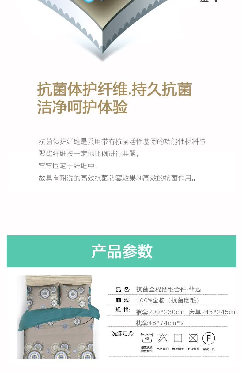商品名称:金丝莉(KINTHERI)抗菌全棉磨毛套件 菲迅/意枫 被套200X230cm