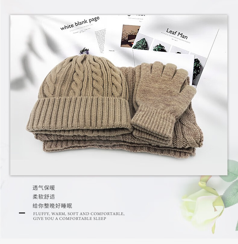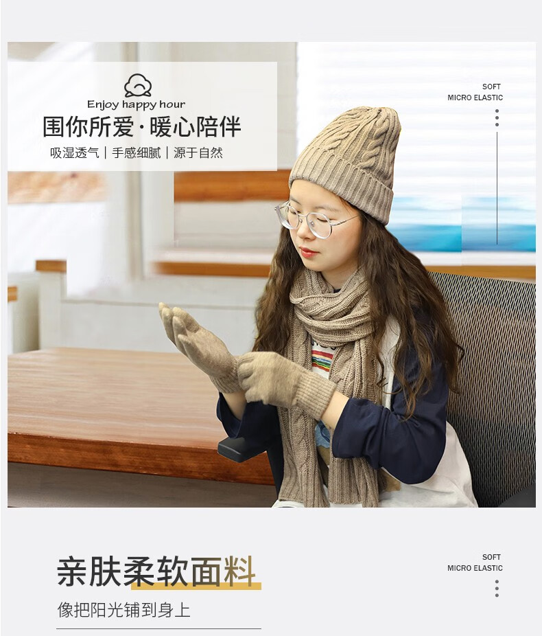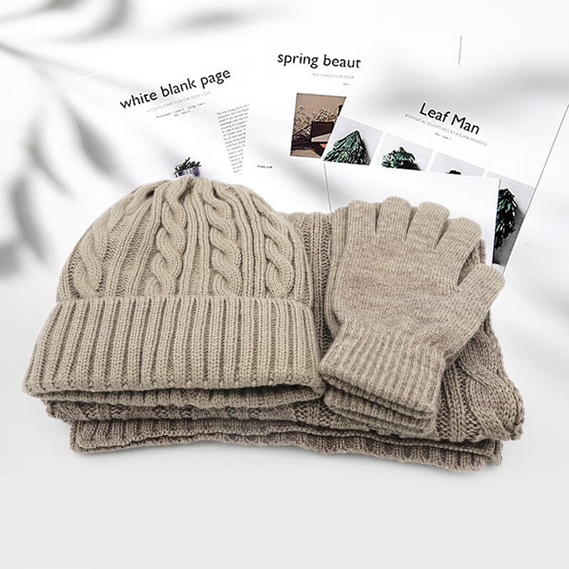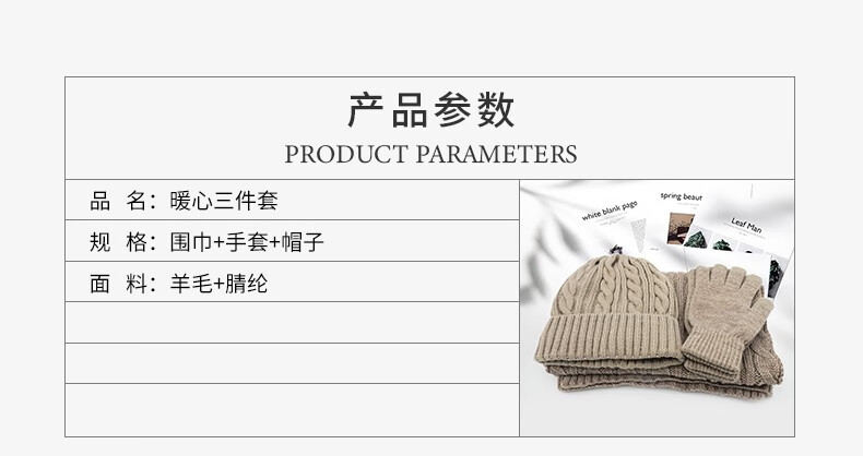 商品名称:金丝莉(KINTHERI) 暖心三件套 卡其色 围巾+手套+帽子