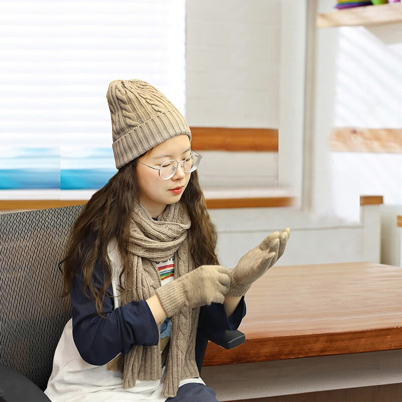 金丝莉(KINTHERI) 暖心三件套 卡其色 围巾+手套+帽子