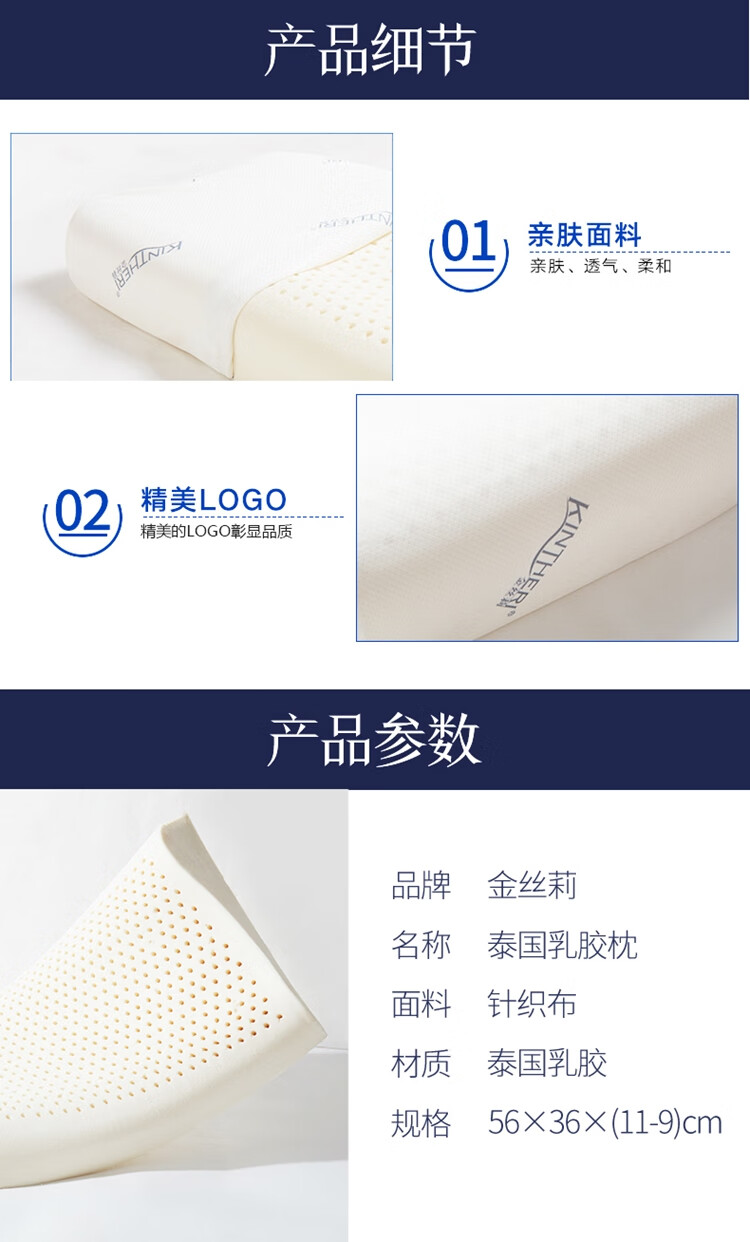 商品名称:金丝莉 泰国乳胶枕 56x36x(11-9)cm