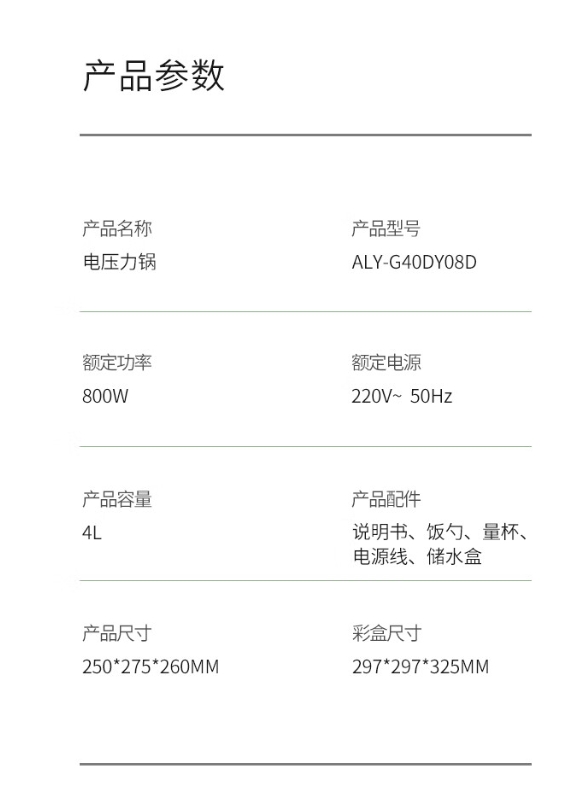 商品名称:北美电器(ACA)电压力锅 ALY-G40DY08D 4L