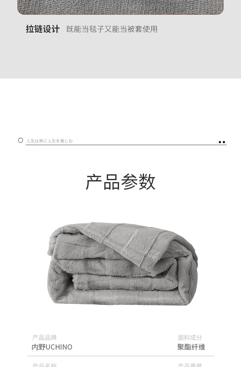 商品名称:内野(UCHINO)兔兔绒多功能毛毯 HU-HY03T16 200*230cm 2.4kg