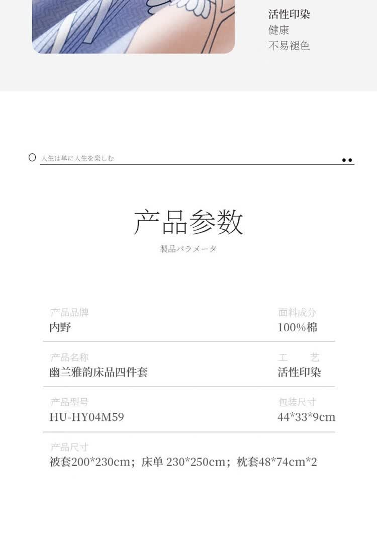 商品名称:内野(UCHINO)幽兰雅韵床品四件套 HU-HY04M59 被套 200×230cm 定制款