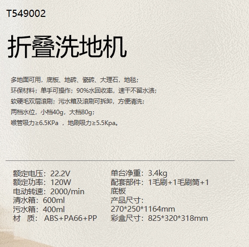 商品名称:Tower 折叠洗地机 T549002