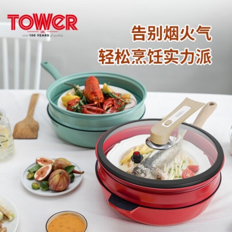 Tower 斑驳系列煎炒蒸锅 T800279RED/T800279GRN 4L