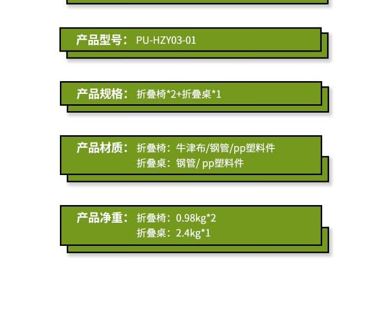 商品名称:PURCGHE普瑞歌 折叠桌椅组合三件套 PU-HZY03-01