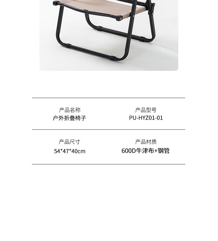 商品名称:PURCGHE普瑞歌 户外折叠椅子 PU-HYZ01-01 黑色 定制款
