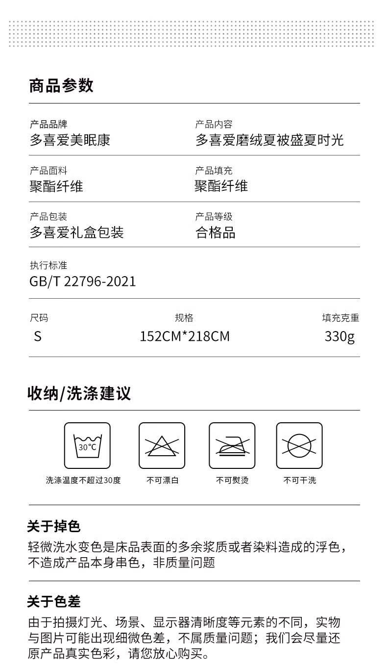 商品名称:多喜爱(Dohia)磨绒夏被 汐颜美梦 S/ 152*218cm(330g)