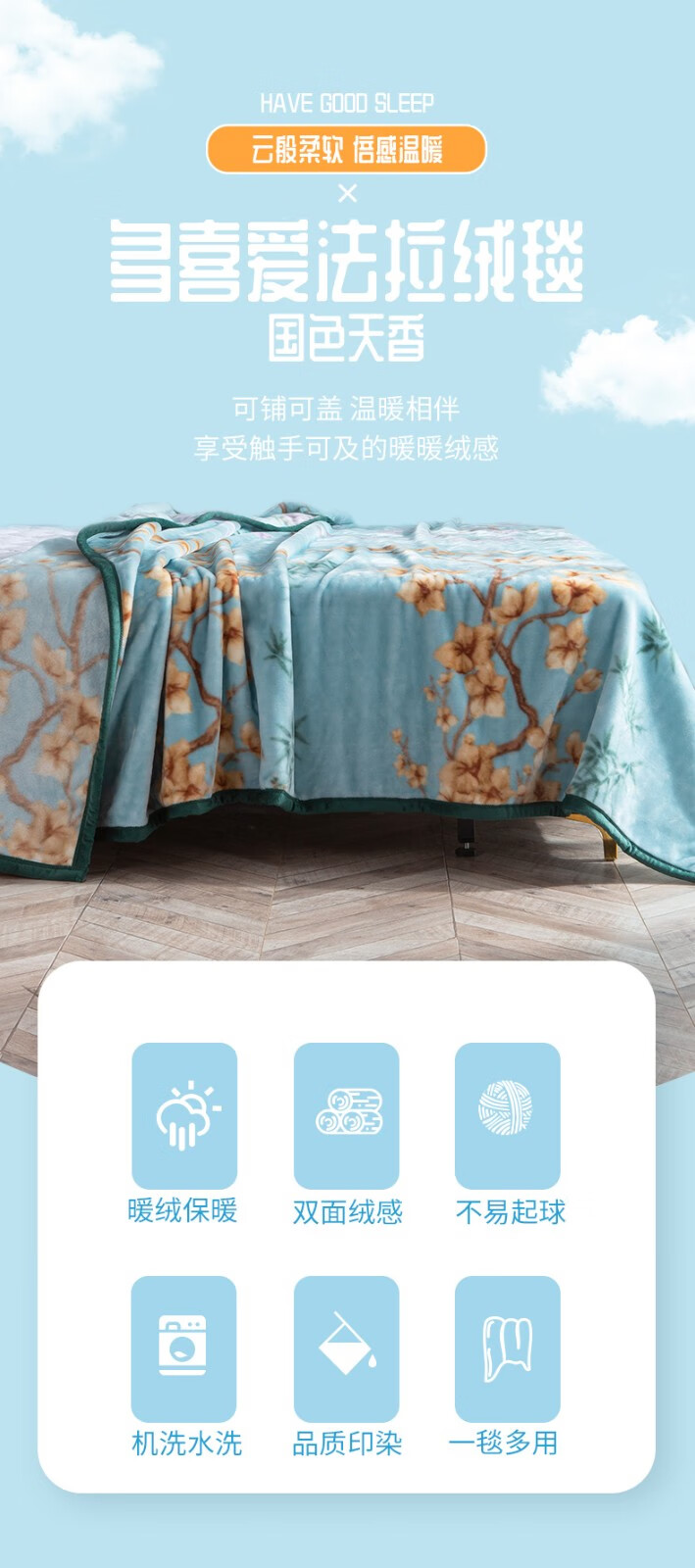 商品名称:多喜爱Dohia毛毯 国色天香法兰绒毯 180*200cm /280g