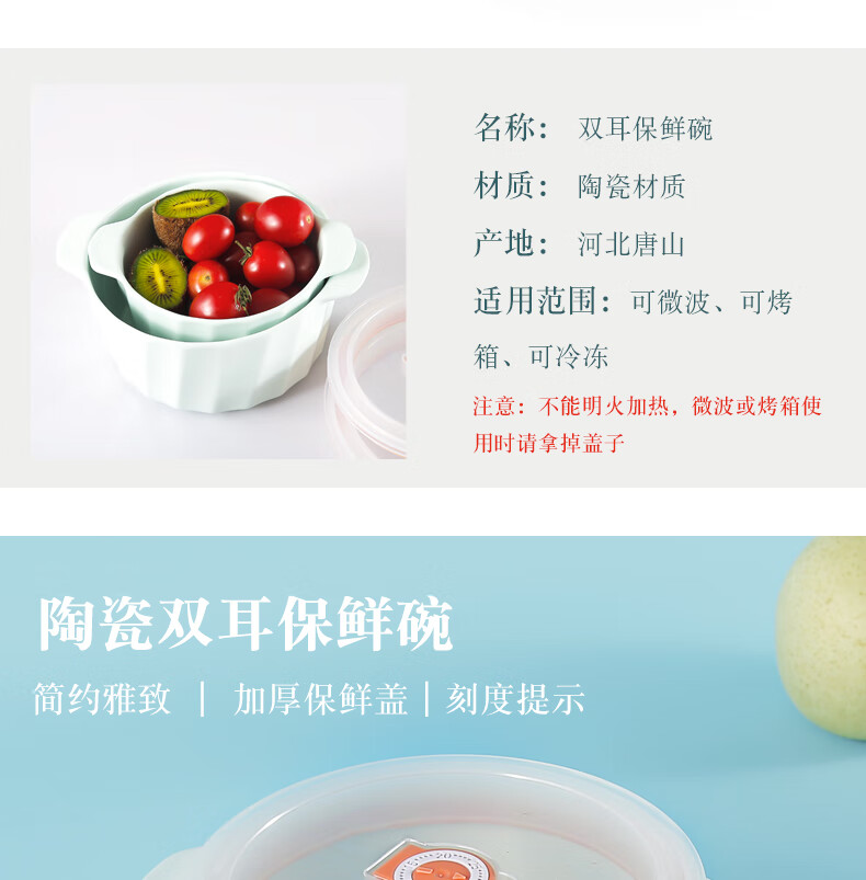 商品名称:爱依瑞斯(ARIS)青瓷双耳保鲜碗两件套 AS-B02A