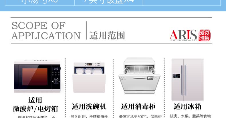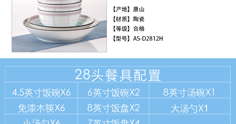 7寸饭盘4个、8寸饭盘2个、6寸面碗2个、8寸汤碗1个、大汤勺1个、4.5寸饭碗6个、小玛戈6个、免漆木筷6双