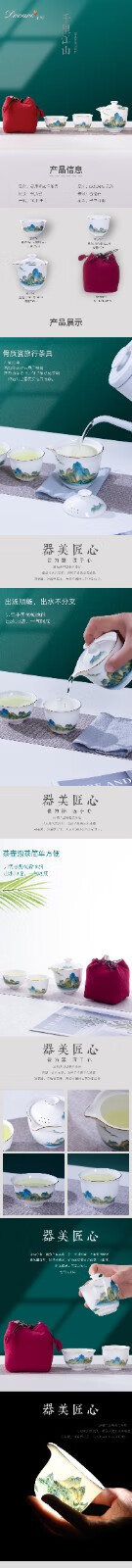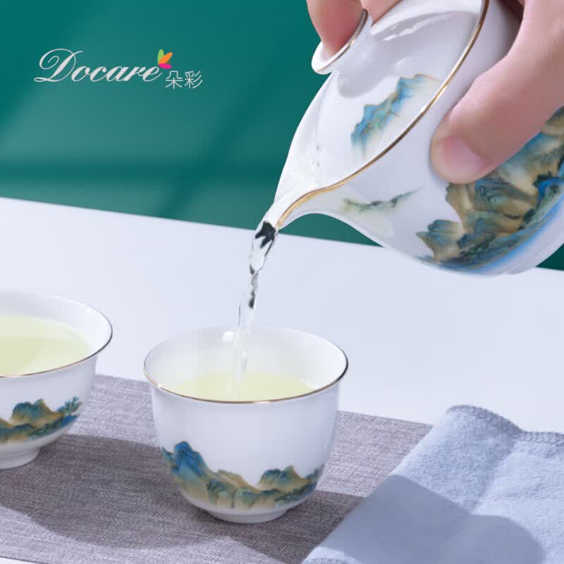商品名称:朵彩 千里江山骨质瓷快客杯三件套 DC-K301A