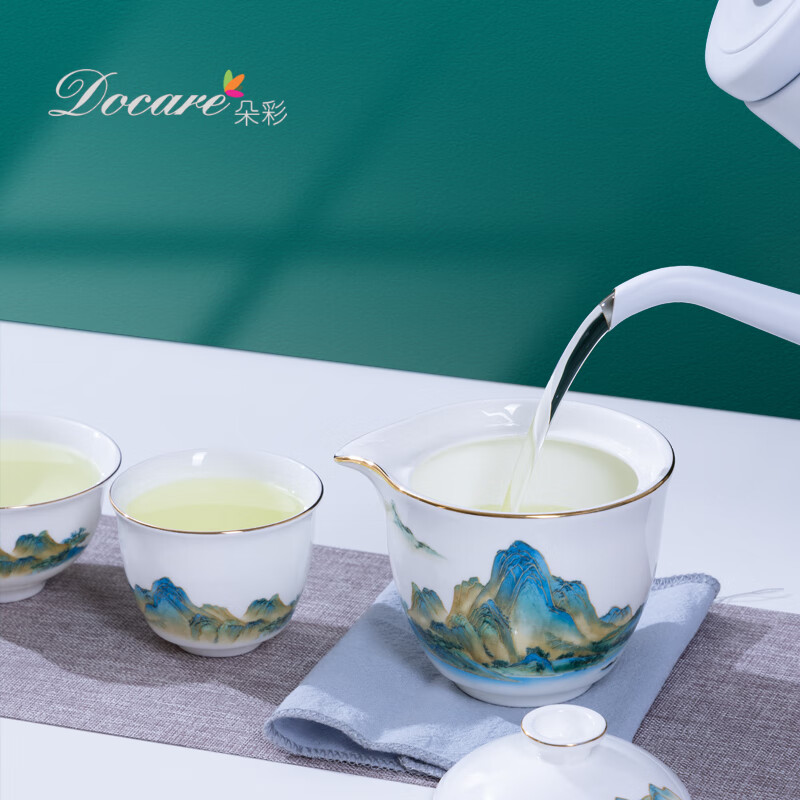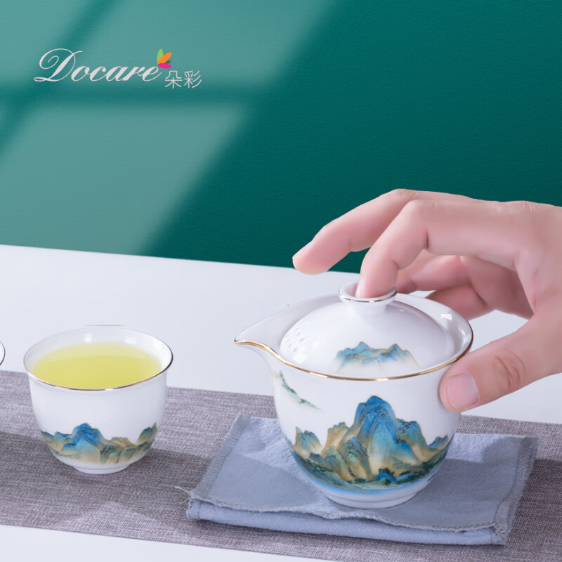 朵彩 千里江山骨质瓷快客杯三件套 DC-K301A