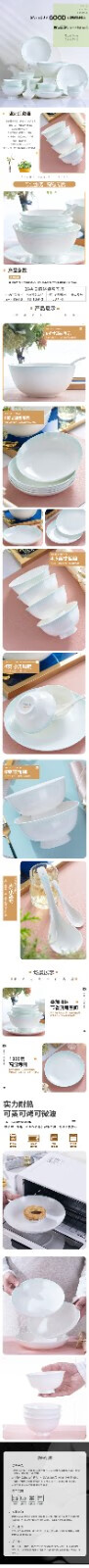 4.5英寸饭碗6个,8英寸饭盘6个,小汤勺6个,4英寸调味碗6个,