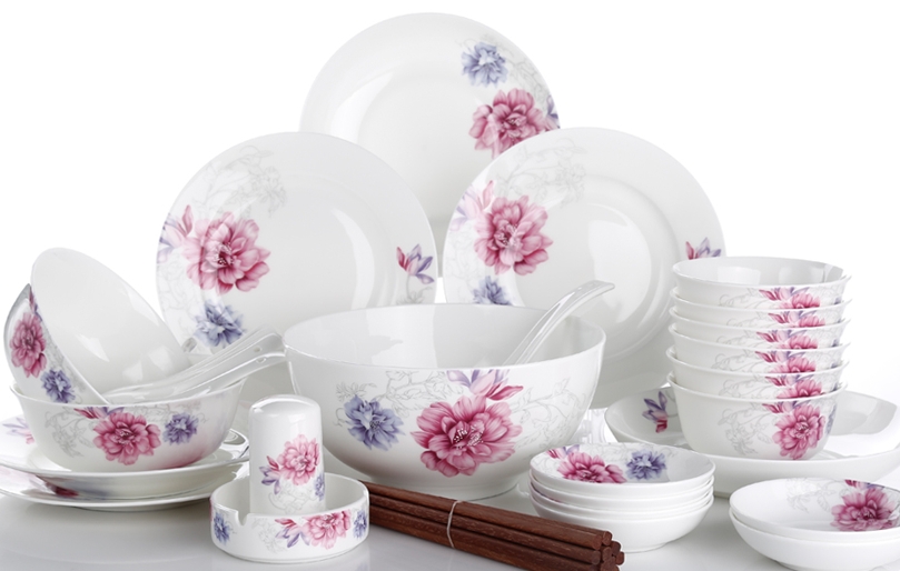4.5英寸金钟碗6个、8英寸平盘2个、8英寸汤盘2个、8英寸饭盘2个、8英寸汤碗1个、6英寸面碗2个、小汤勺6个、大汤勺1个、牙签筒1个、4英寸烟碟1个、4英寸调味碟6个、免漆木筷6双