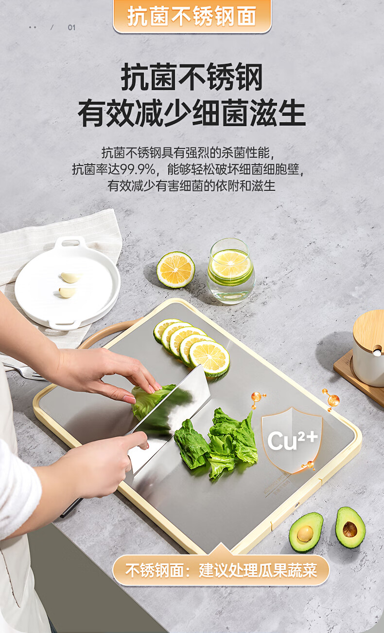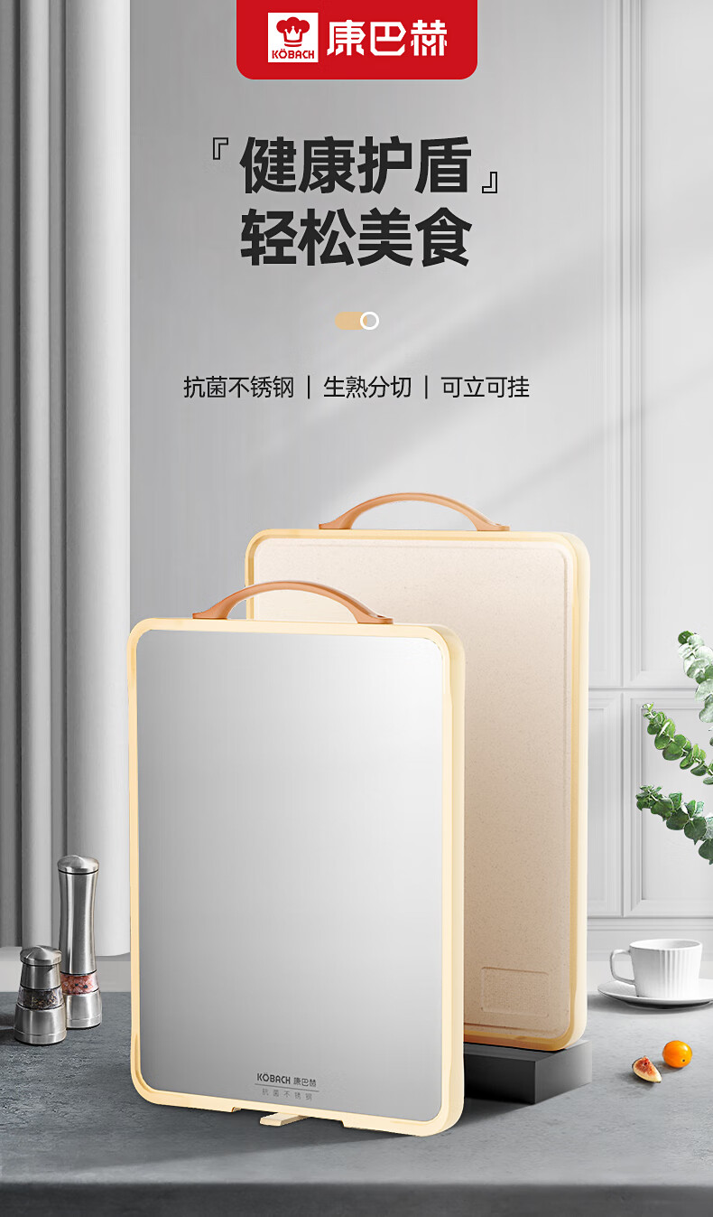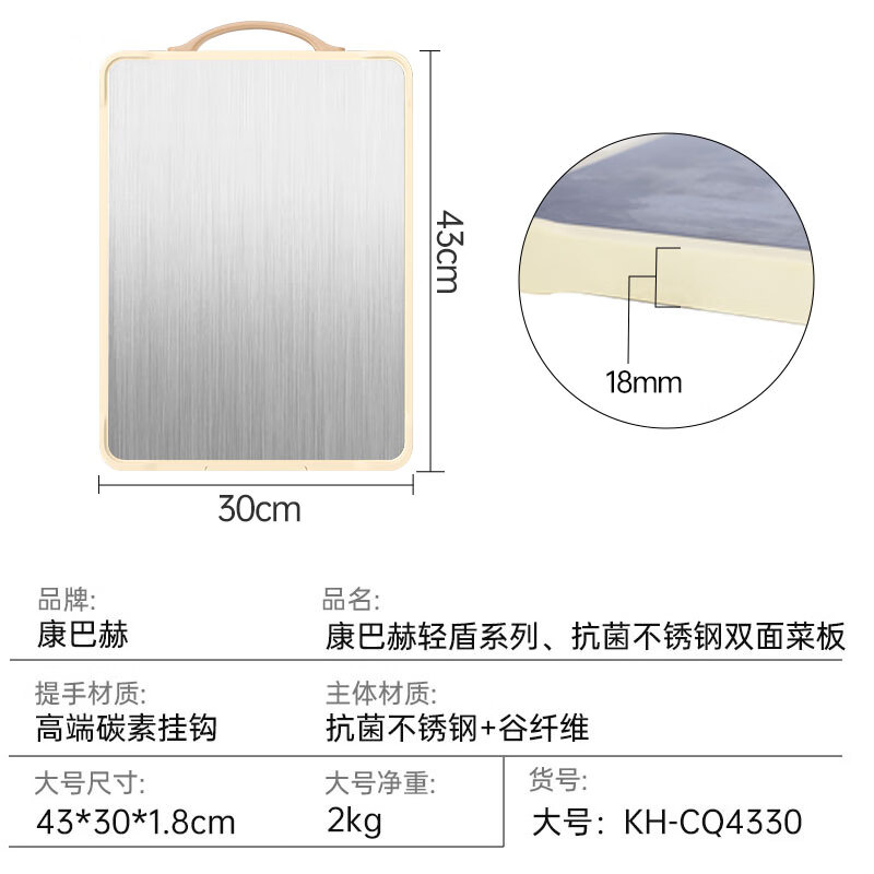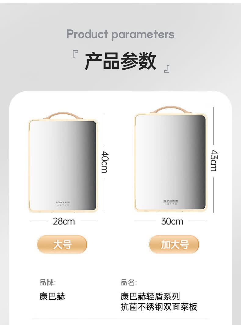商品名称:康巴赫 抗菌不锈钢双面菜板 KH-CQ4028 40*28*1.8cm