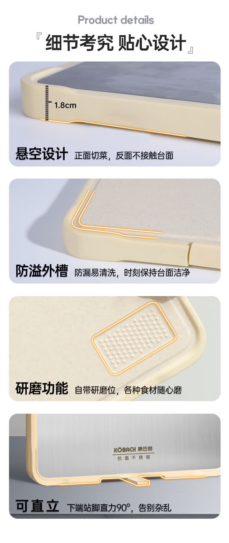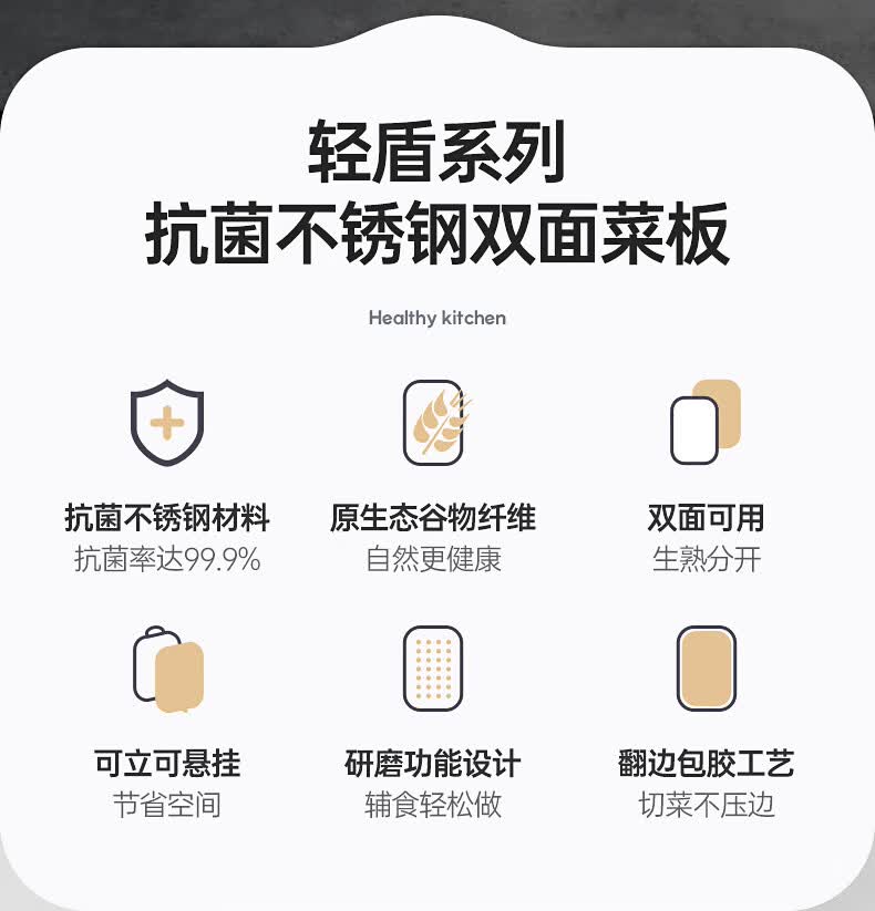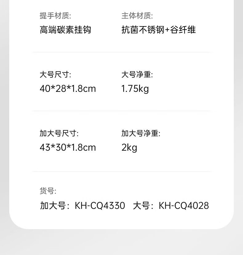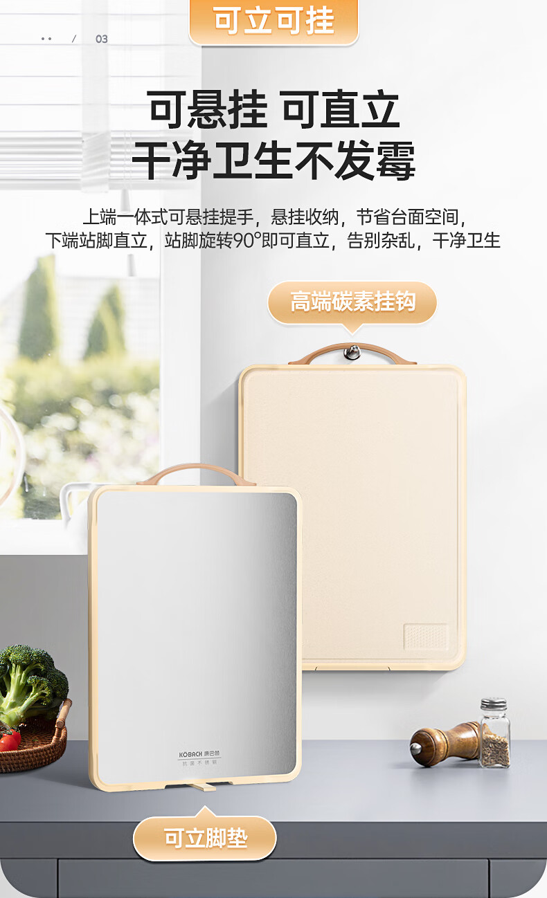 商品名称:康巴赫 抗菌不锈钢双面菜板 KH-CQ4028 40*28*1.8cm