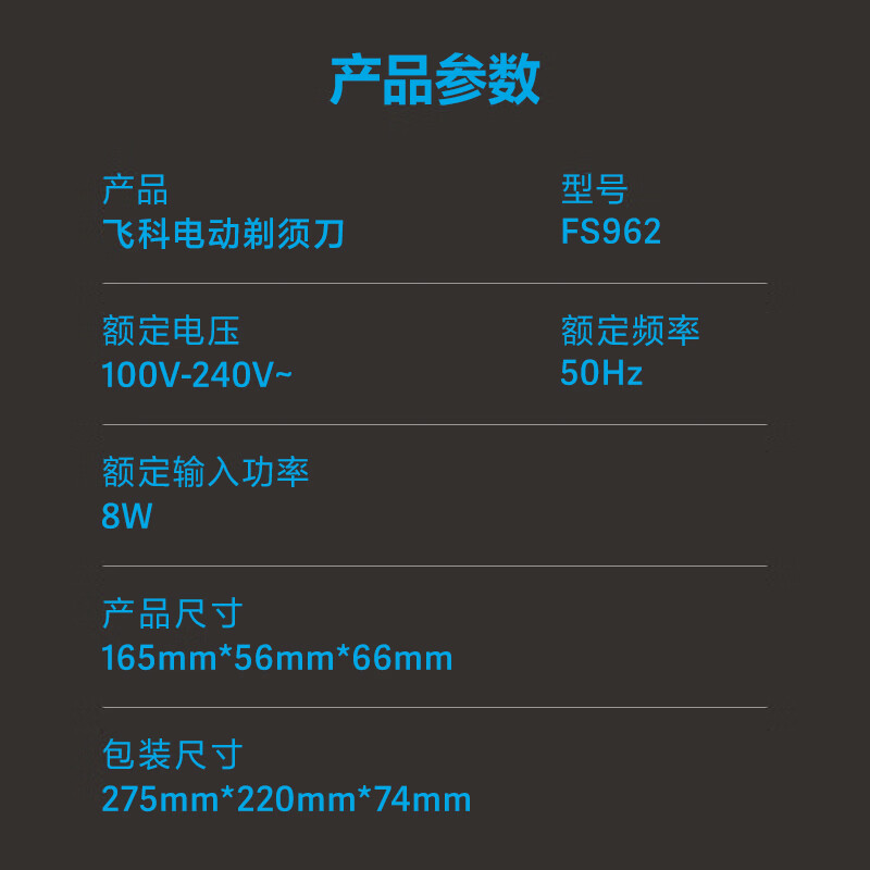 商品名称:飞科(FLYCO) 浮动旋转式剃须刀 FS962