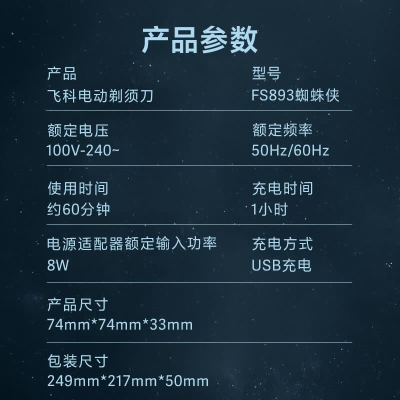 商品名称:飞科(FLYCO)浮动旋转式剃须刀 FS893 漫威联名款之蜘蛛侠