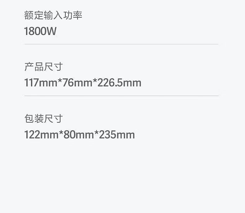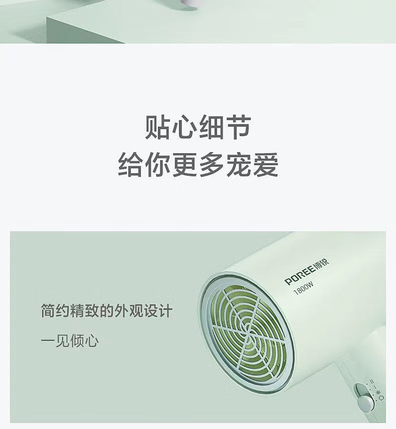 商品名称:博锐(POREE)电吹风机 1800W大功率 PH1622