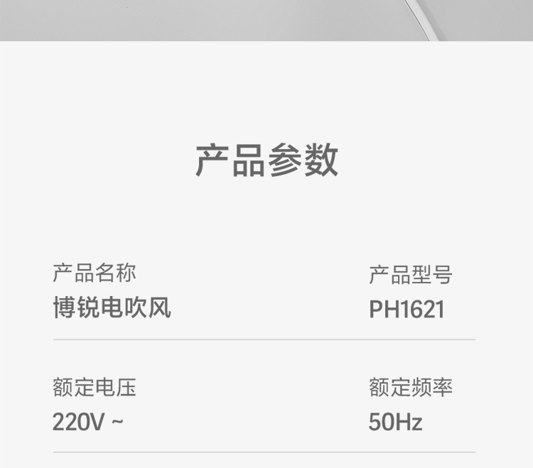 商品名称:博锐(POREE)电吹风机 1800W PH1621