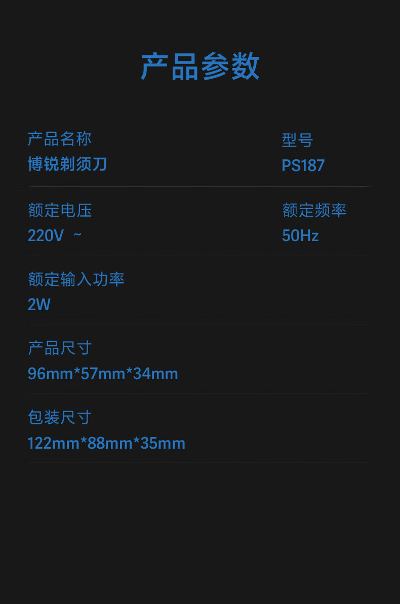 商品名称:博锐 电动剃须刀 PS187