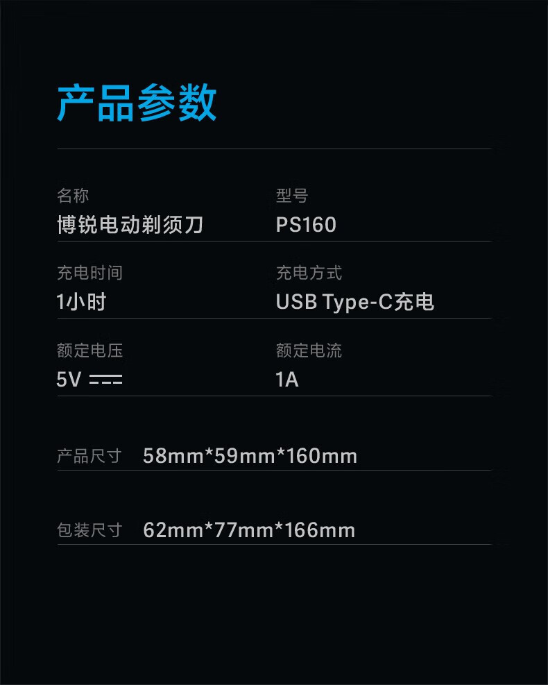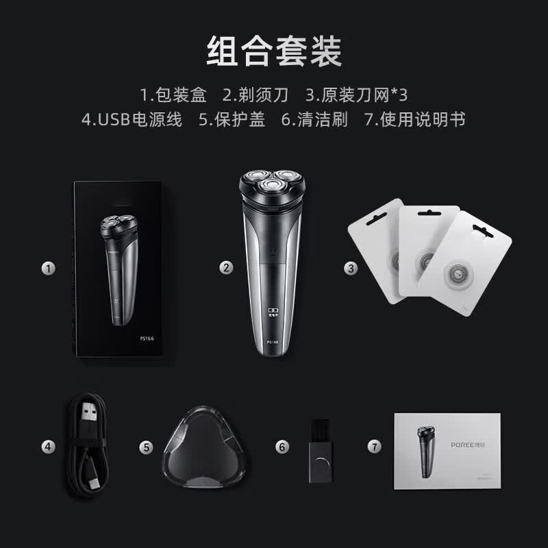 商品名称:博锐(POREE)剃须刀电动 PS160
