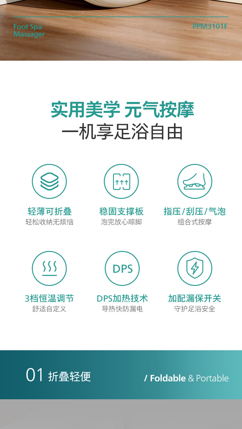 商品名称:飞利浦 泡脚桶 折叠足浴盆 PPM3101F