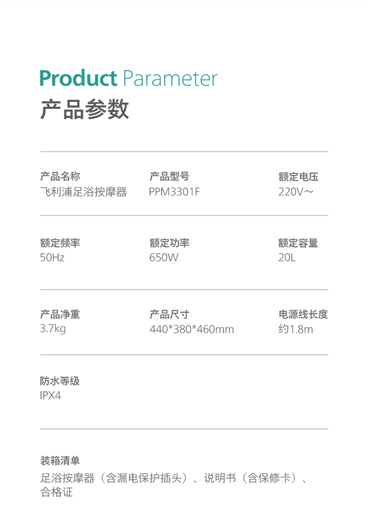 商品名称:飞利浦 足浴按摩器 PPM3301F