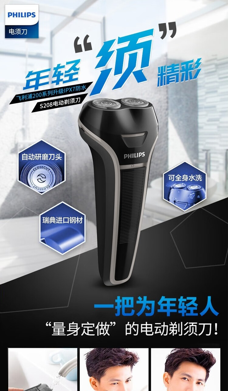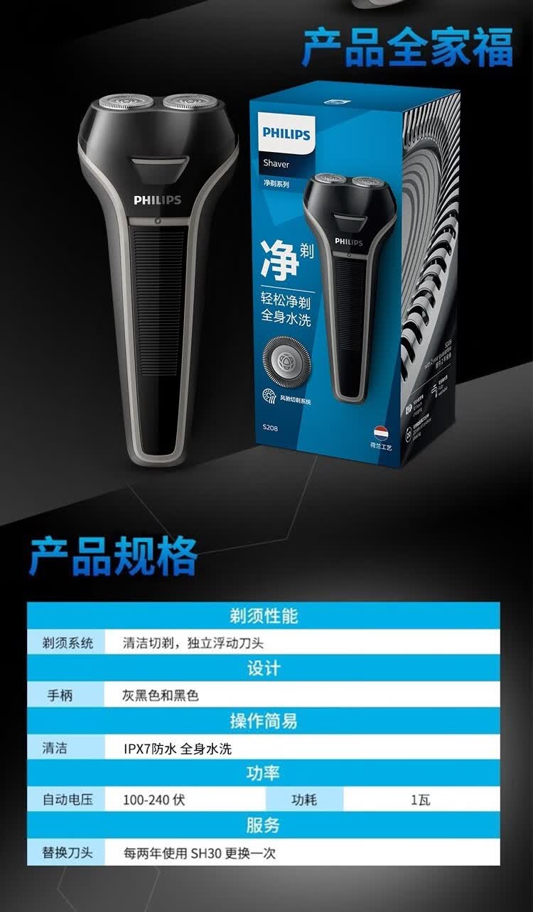 商品名称:飞利浦(PHILIPS) 电动剃须刀 S208