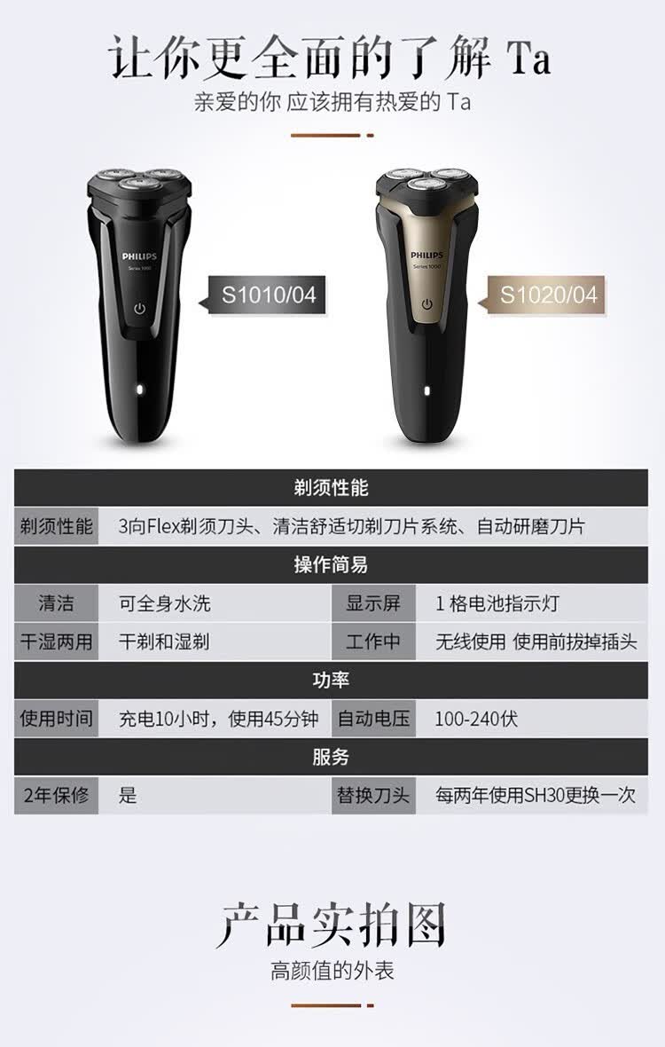 商品名称:飞利浦(PHILIPS)电动剃须刀 S1010/04
