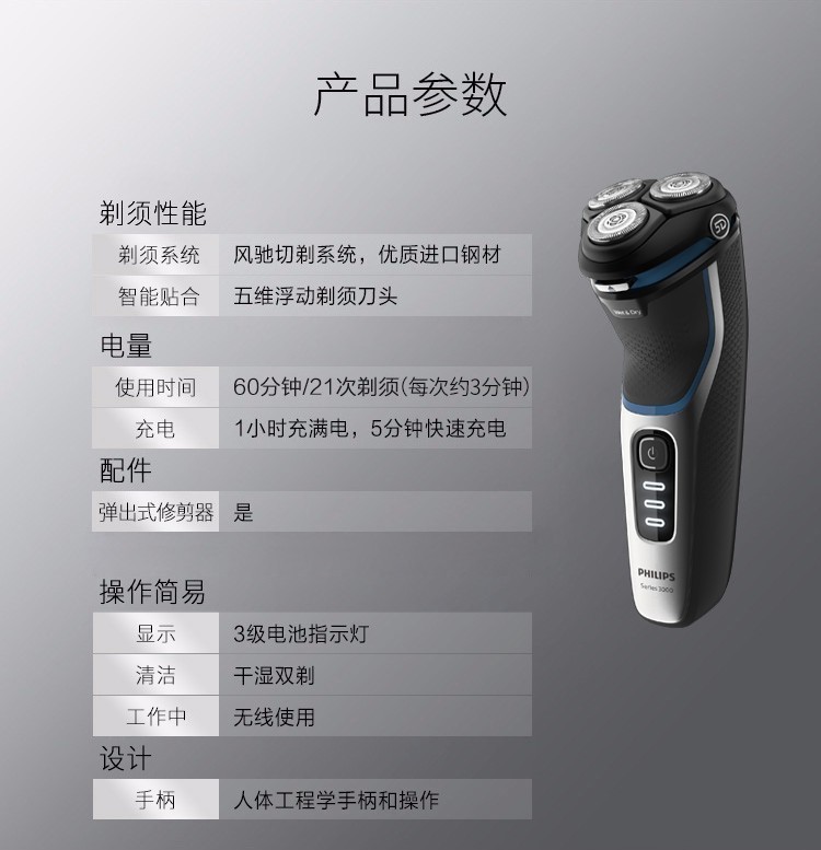 商品名称:飞利浦(PHILIPS)剃须刀电动 S3206/09