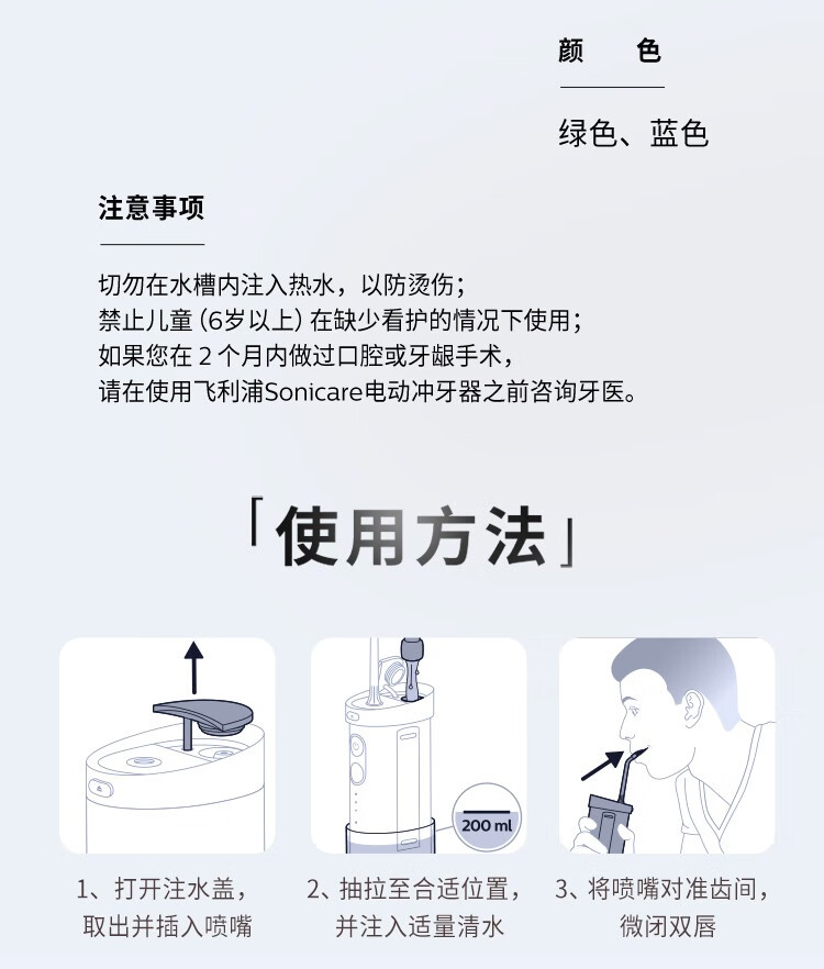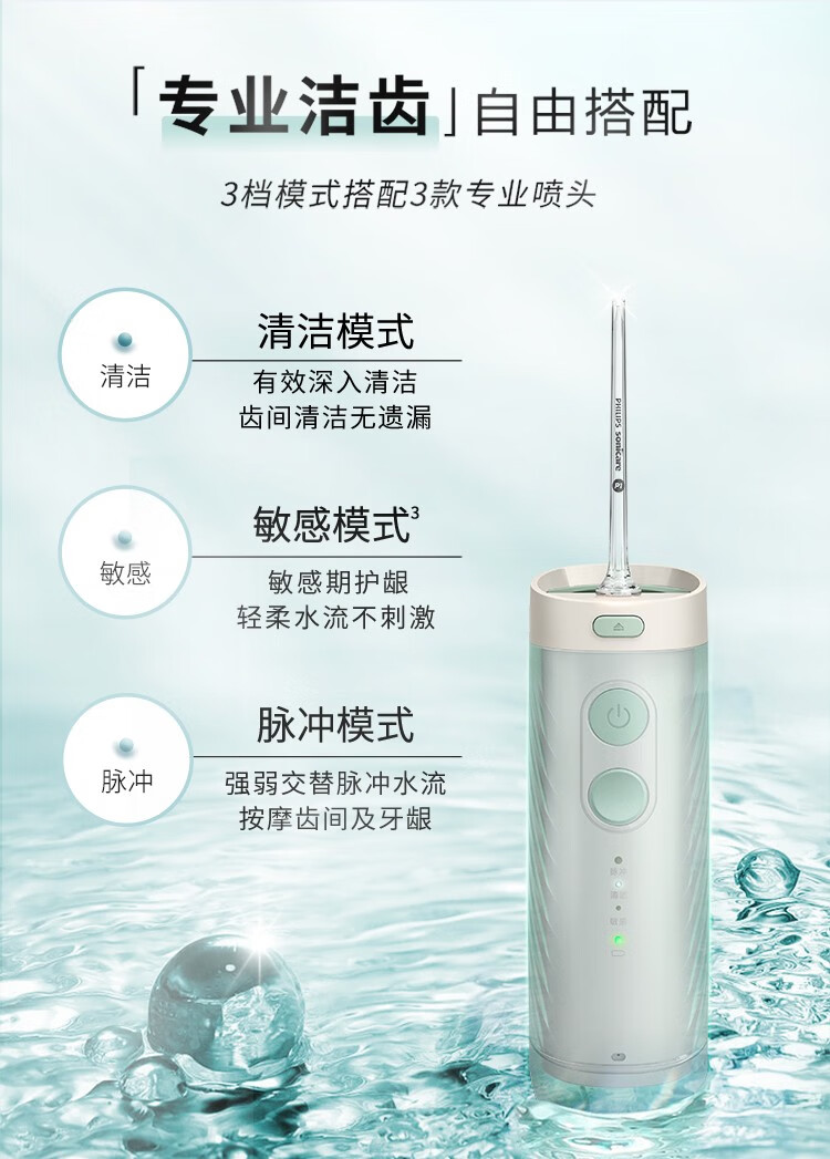 商品名称:飞利浦 便携冲牙器 HX3331 不焦绿
