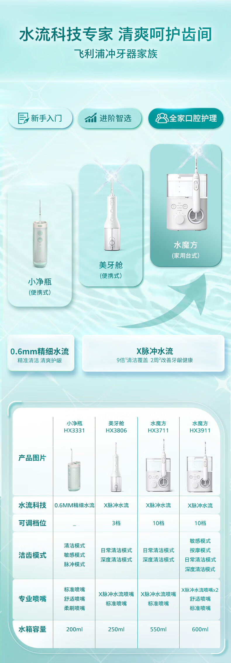 商品名称:飞利浦(PHILIPS)家用立式洁牙器 HX3806