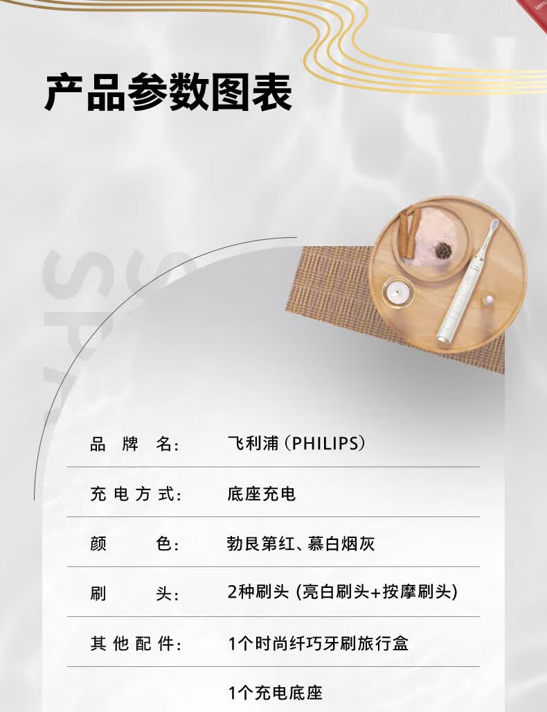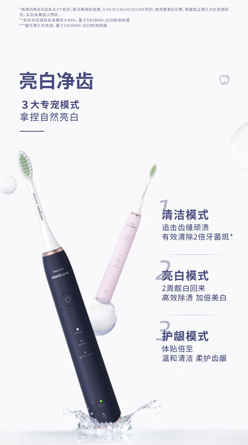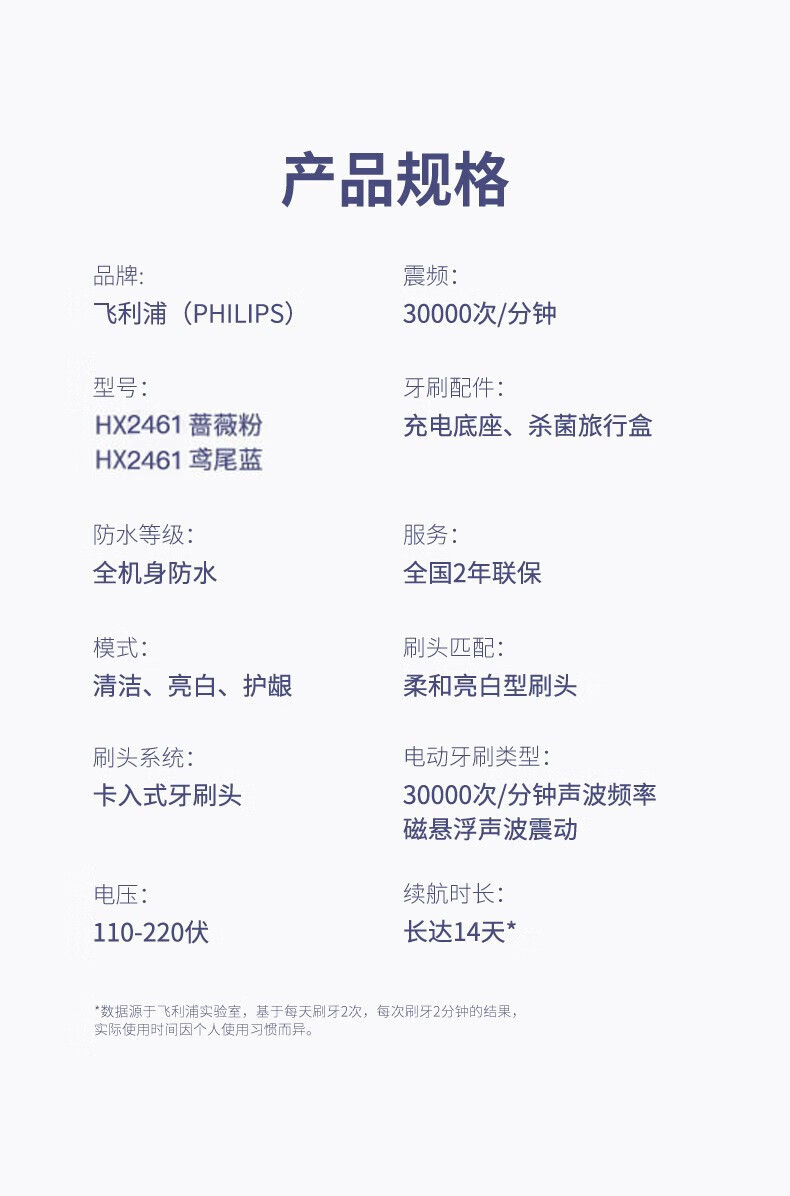 商品名称:飞利浦(PHILIPS)充电式声波震动牙刷 HX2461 颜色随机