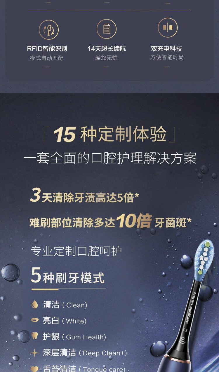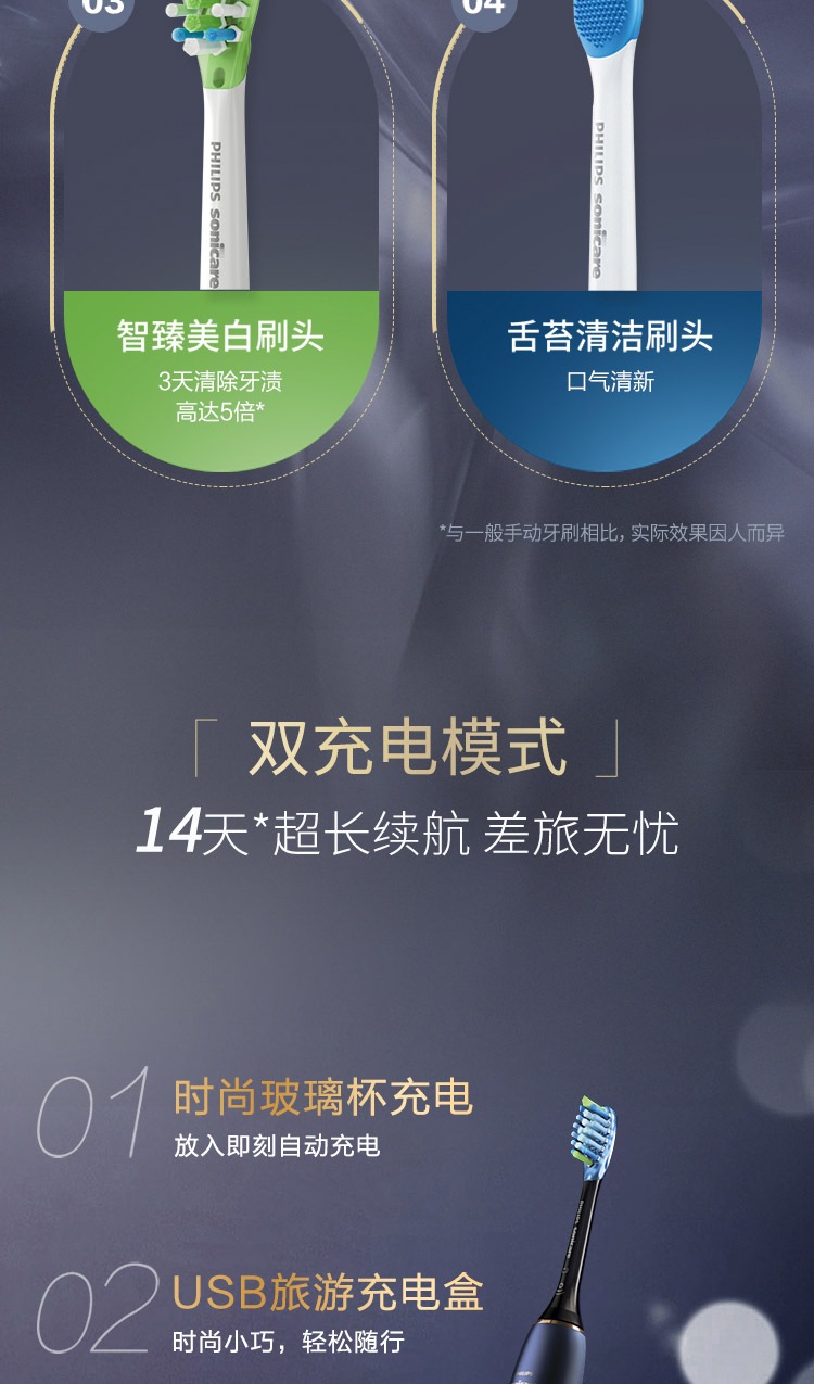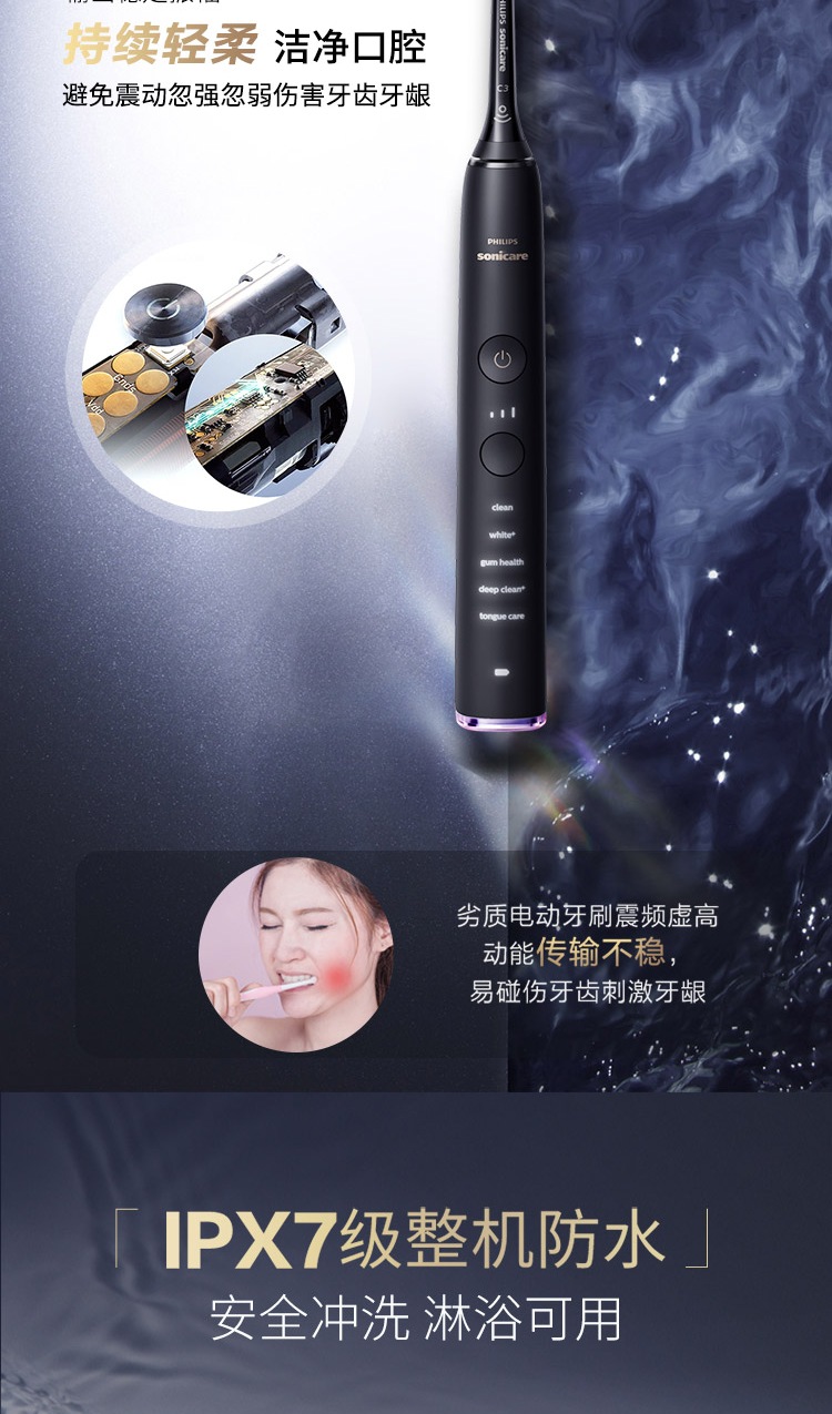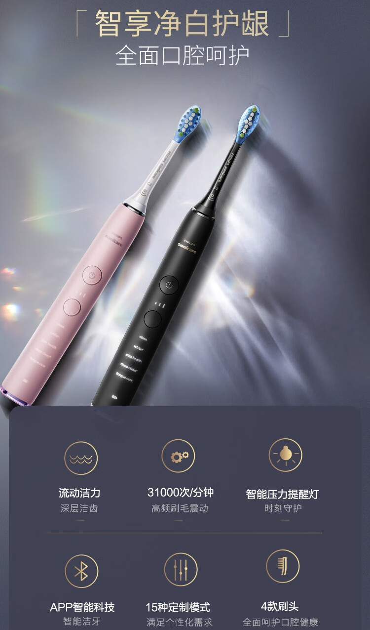 商品名称:飞利浦(PHILIPS)充电式声波震动牙刷 HX9954