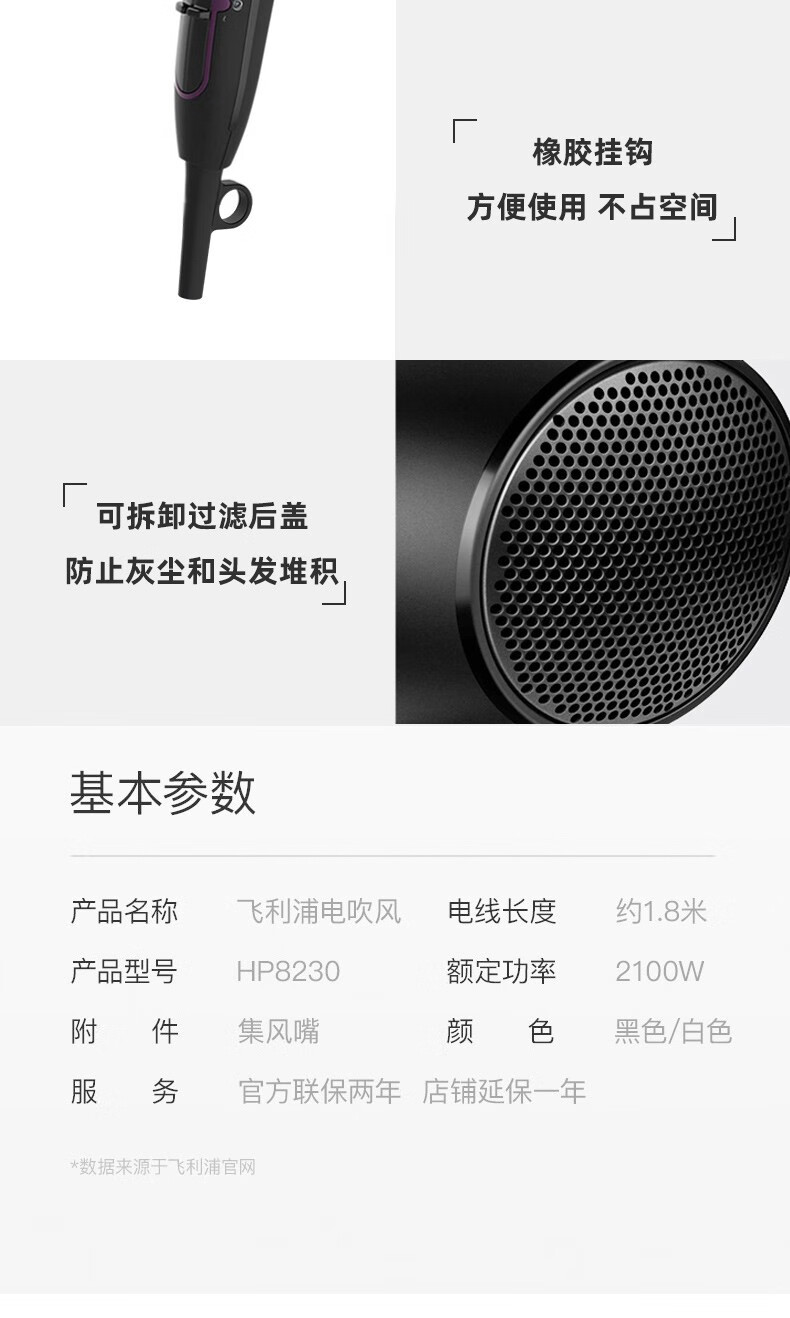 商品名称:飞利浦(PHILIPS)电吹风机 2100w HP8230