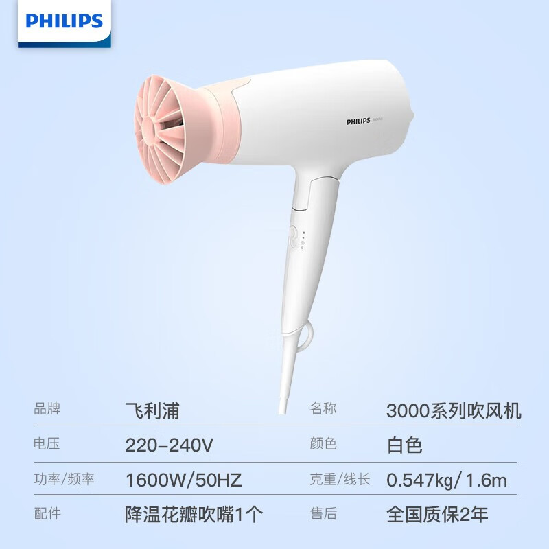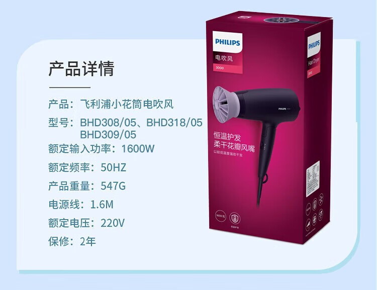 商品名称:飞利浦(PHILIPS)小花筒电吹风 1600w BHD309