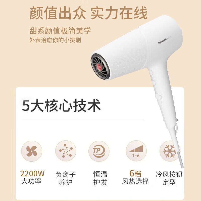 商品名称:飞利浦(PHILIPS)电吹风机 2200w BHD501/05