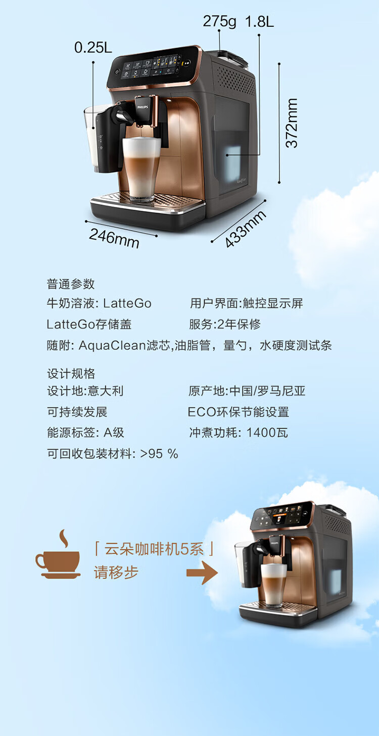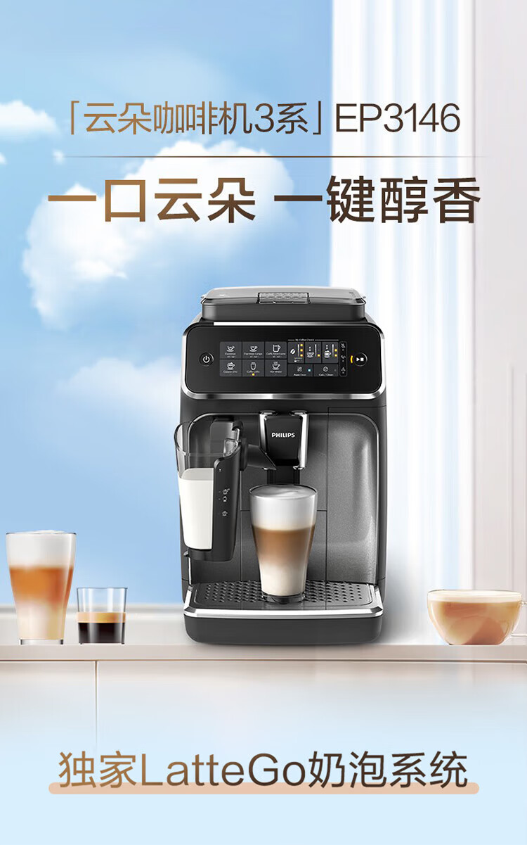 商品名称:飞利浦 全自动浓缩咖啡机 EP3146 1.8L