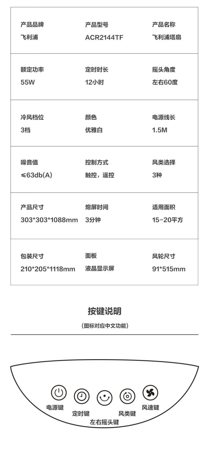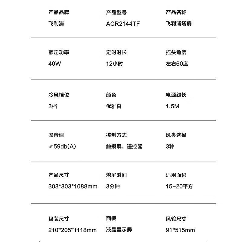 商品名称:飞利浦 家用遥控塔扇 ACR2144TF 白色