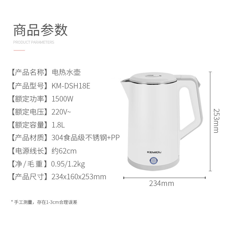 商品名称:科米欧(KEMIOU) 电热水壶 1.8L KM-DSH18E