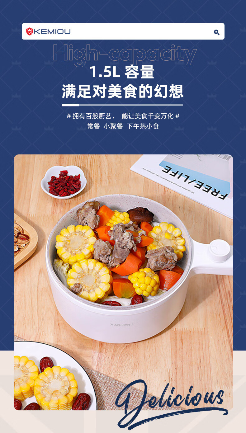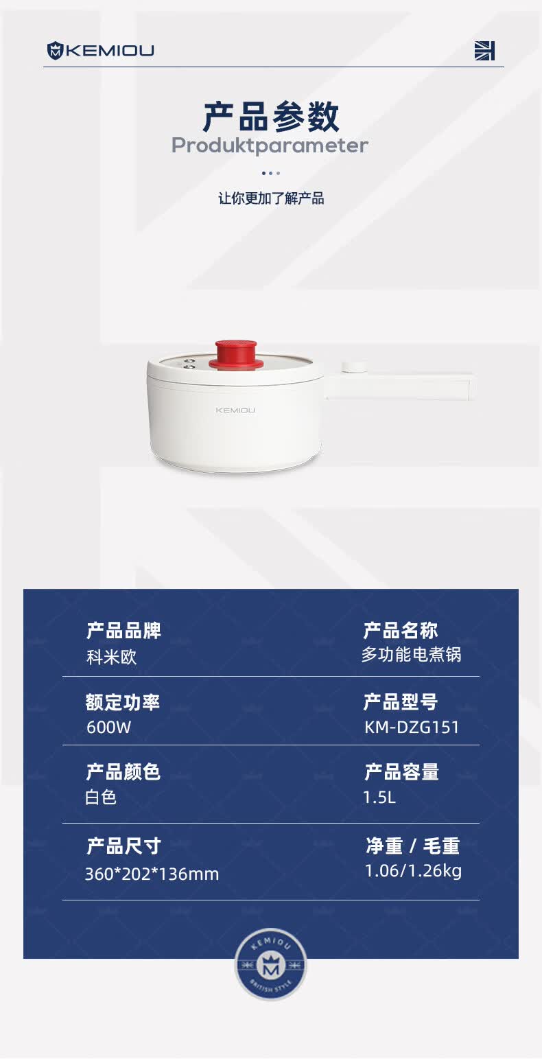 商品名称:科米欧(KEMIOU) 多功能电煮锅 1.5L KM-DZG151