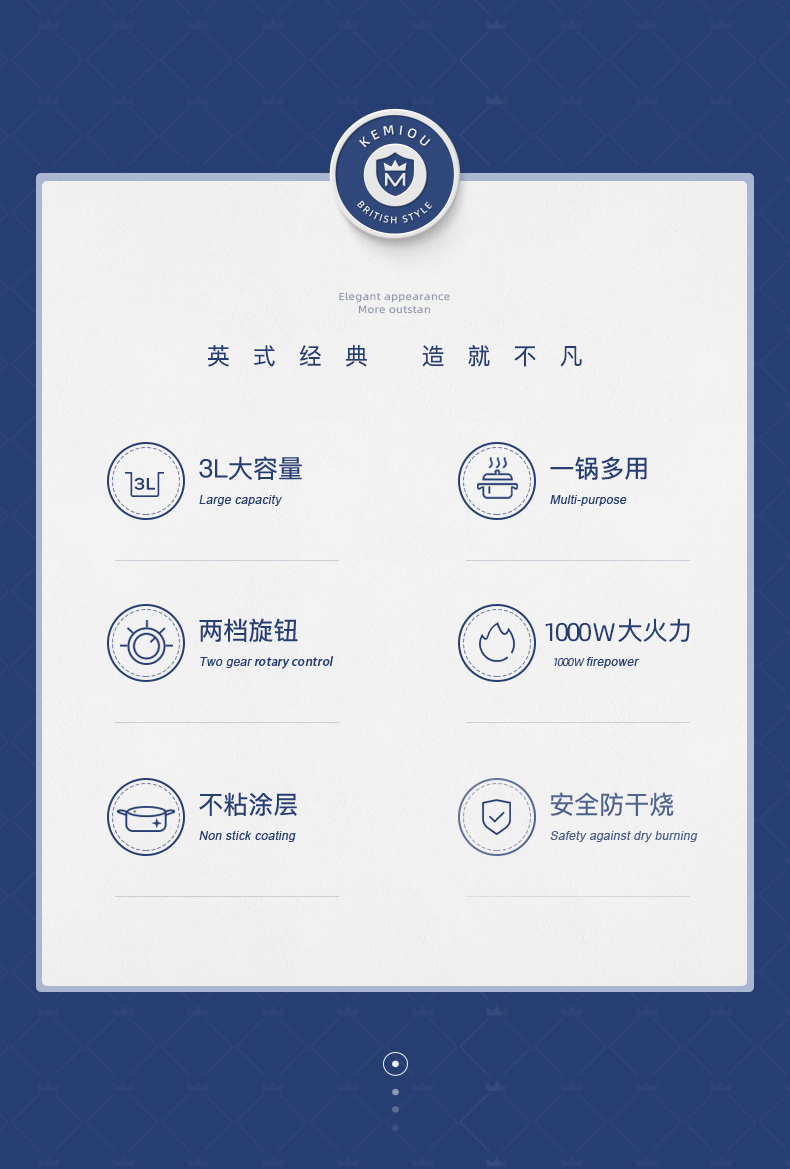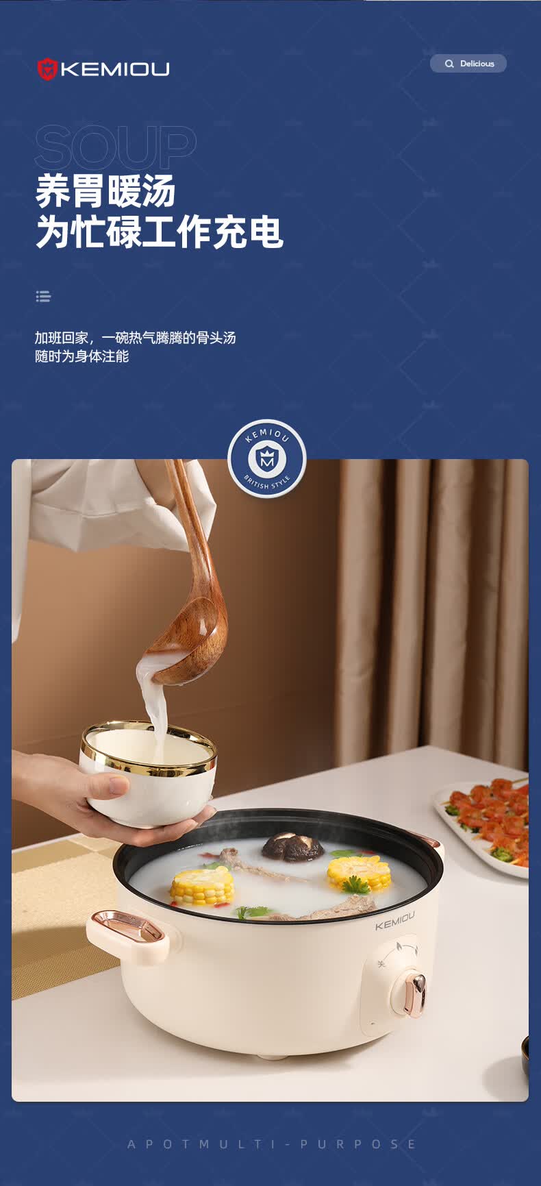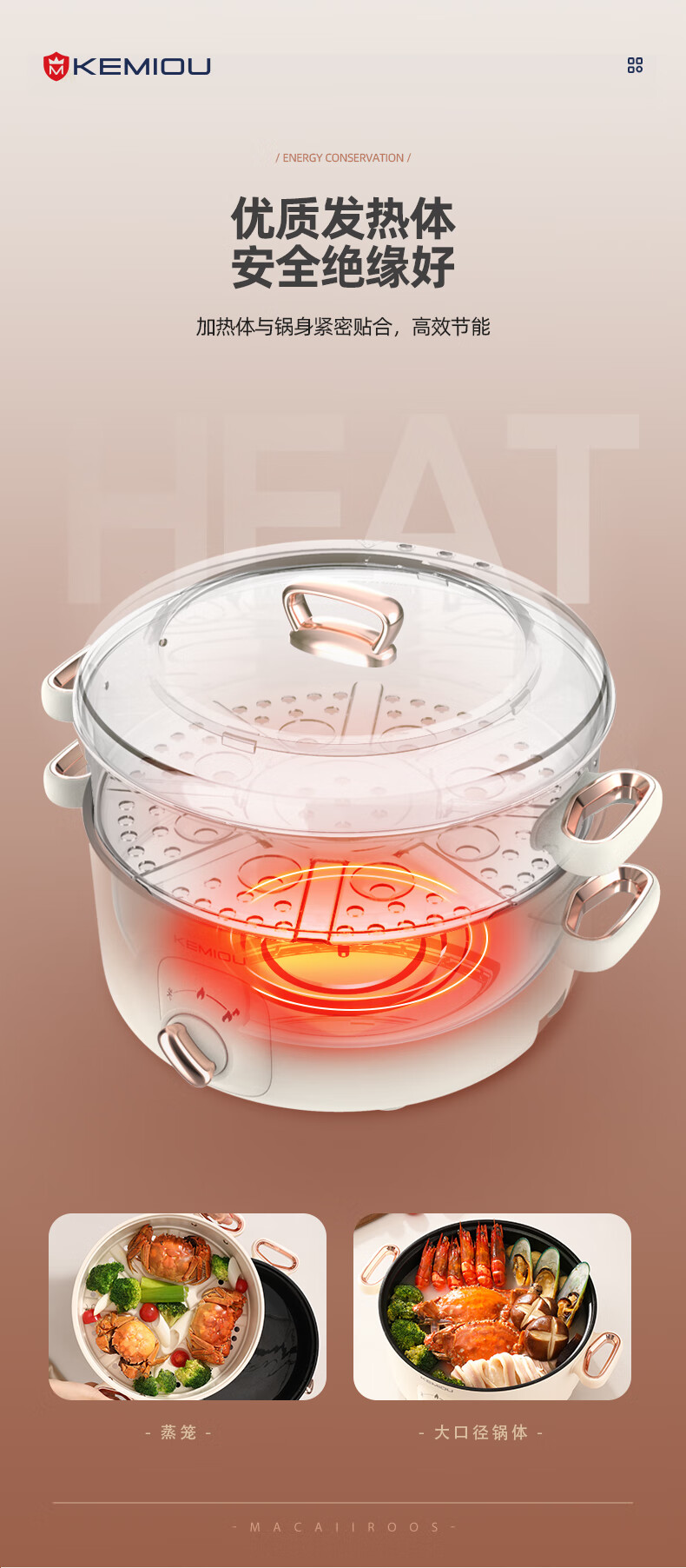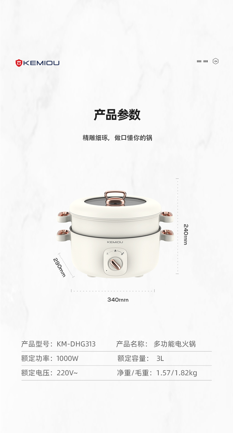 商品名称:科米欧(KEMIOU) 多功能电煮锅 3L KM-DHG313