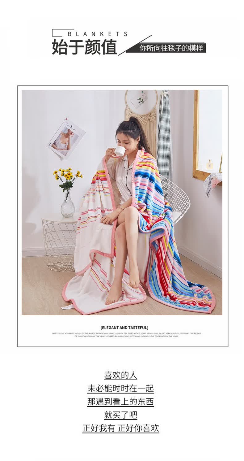 商品名称:红蜻蜓 云丝绒盖毯-雨后彩虹 HQT-3003 180×200cm