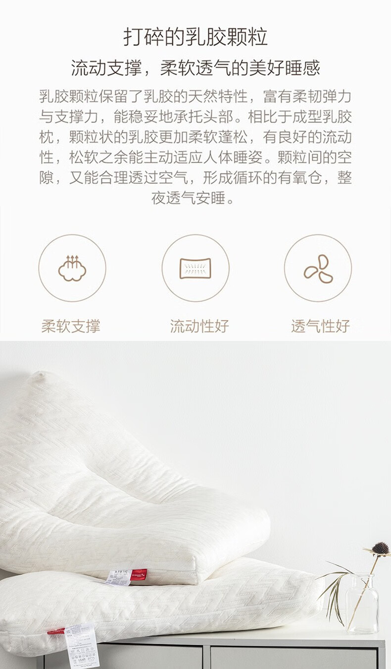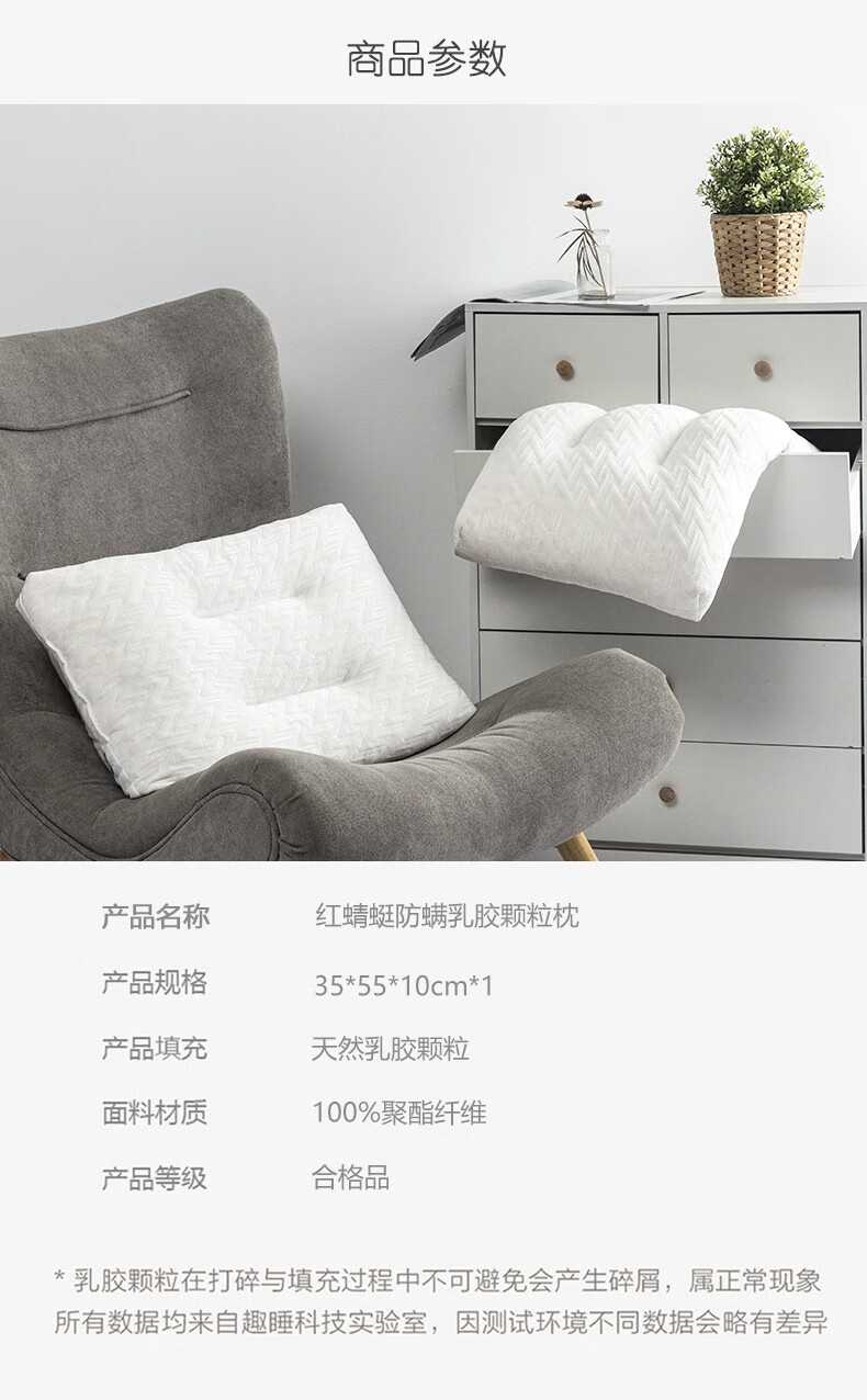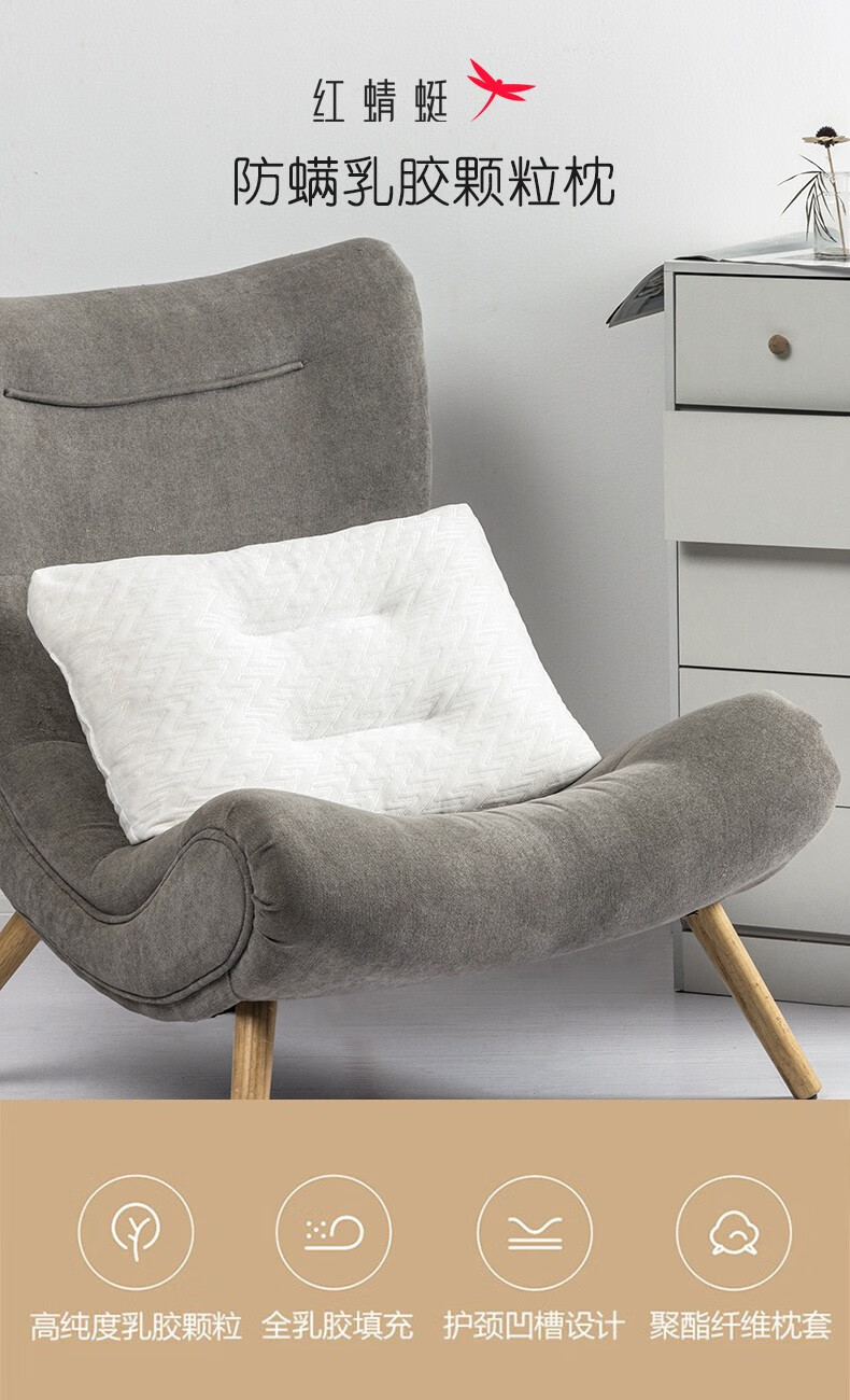 商品名称:红蜻蜓 防螨乳胶颗粒枕 HQT-3021 35×55×10cm×1
