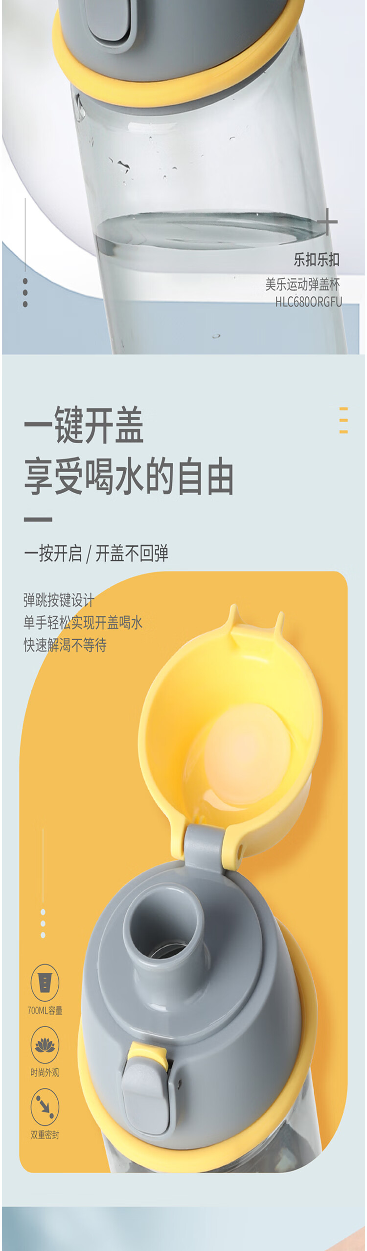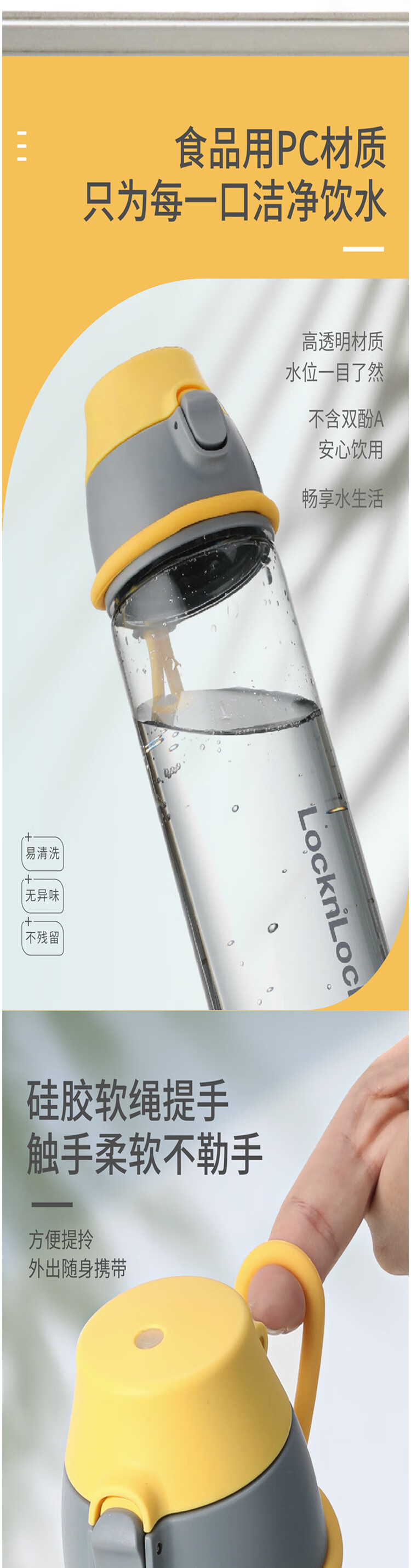 商品名称:LOCK&LOCK乐扣 美乐塑料杯弹盖杯(灰黄) HLC680YELFU