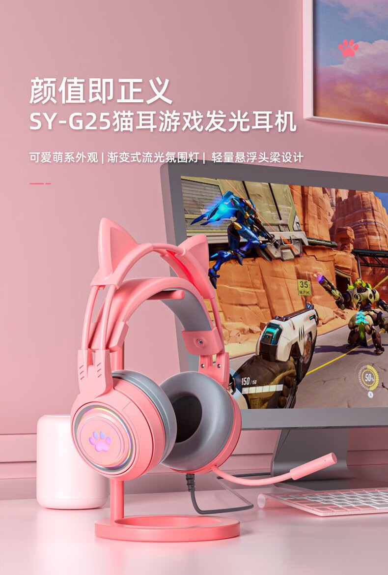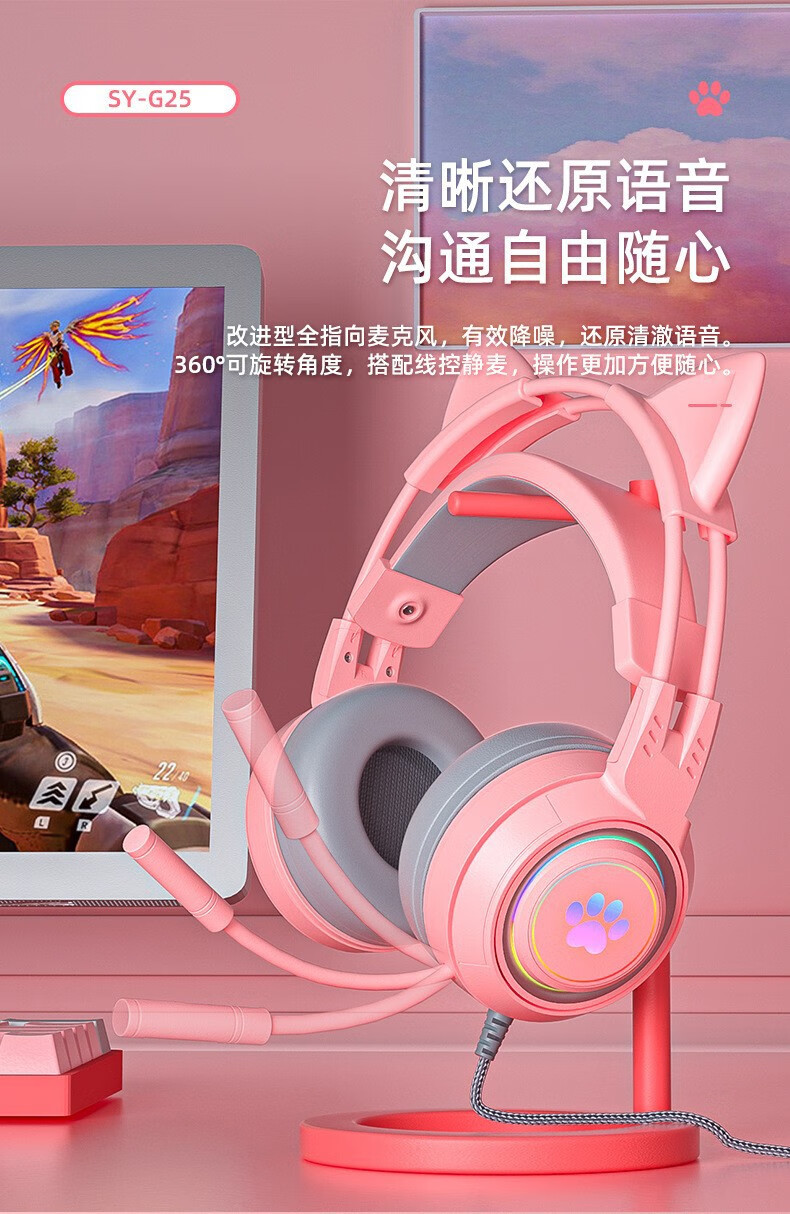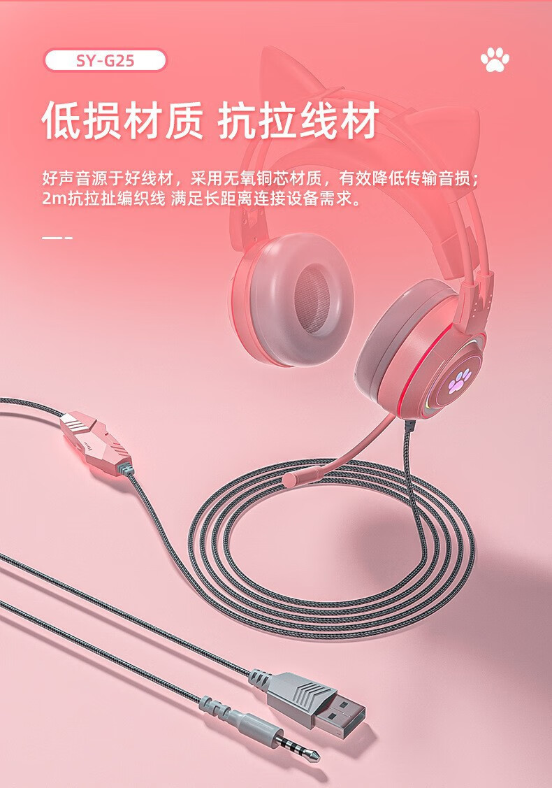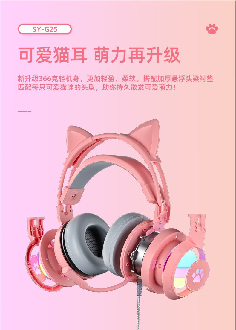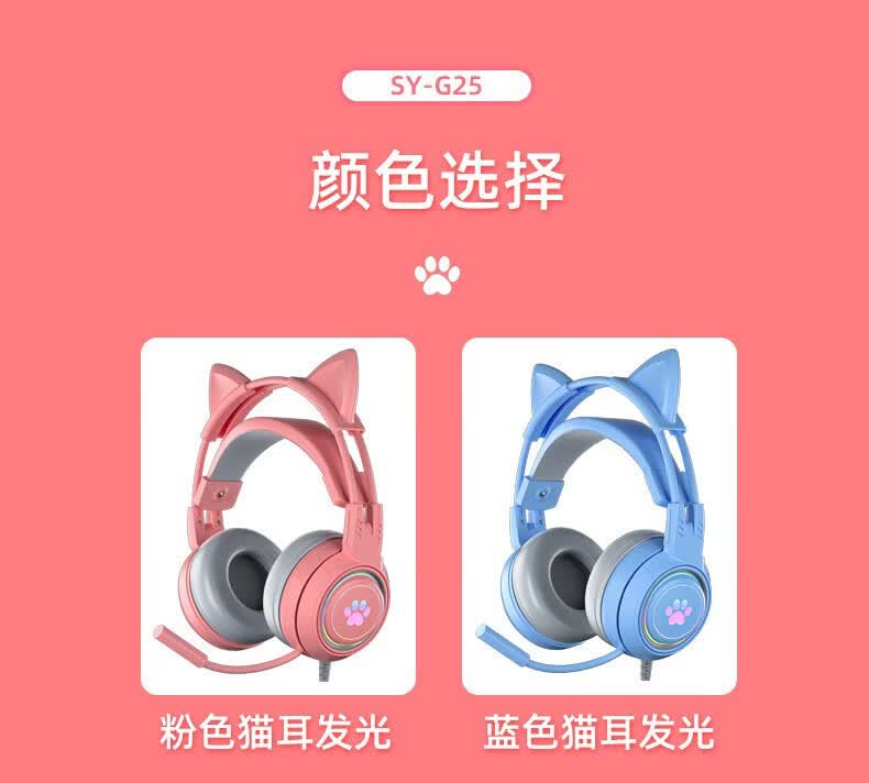 商品名称:斯泰克 猫耳游戏发光头戴耳机 SY-G25