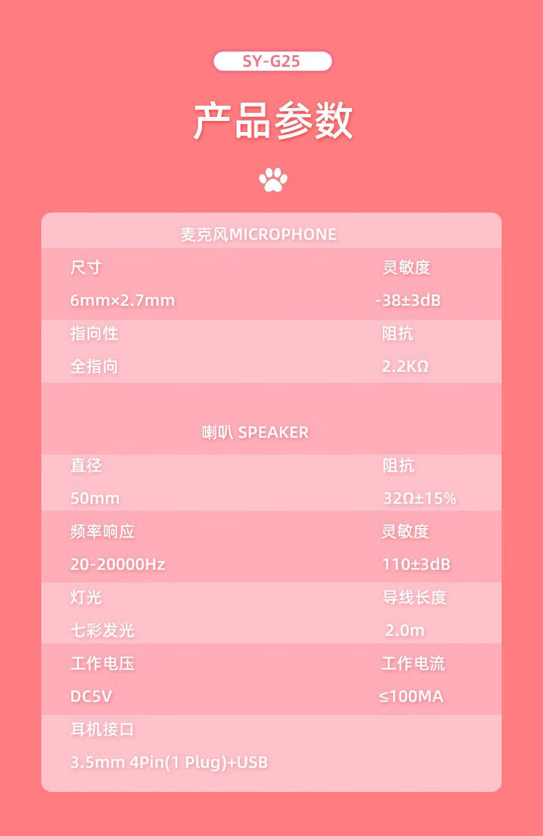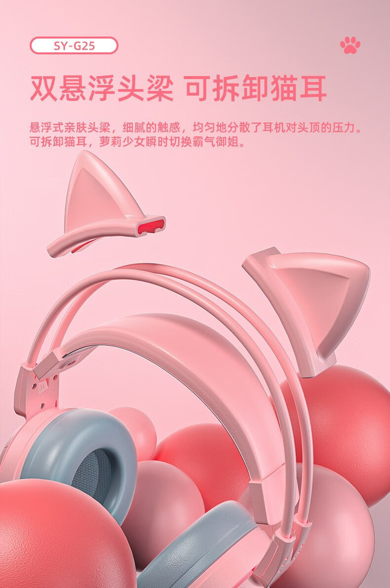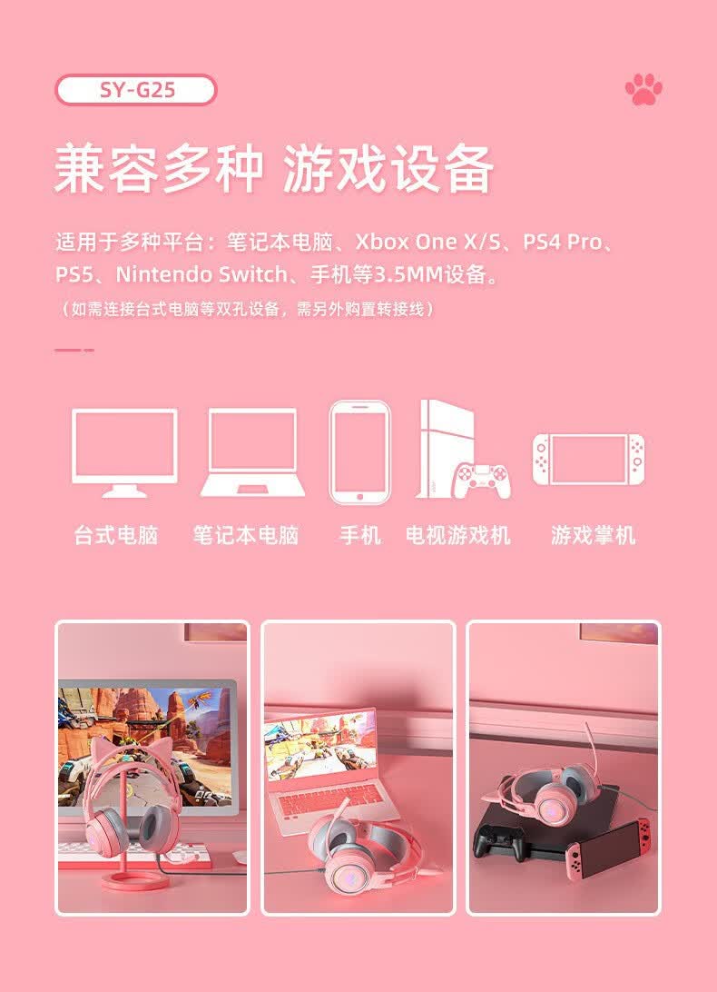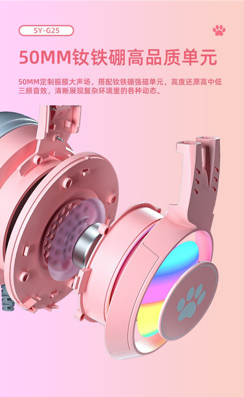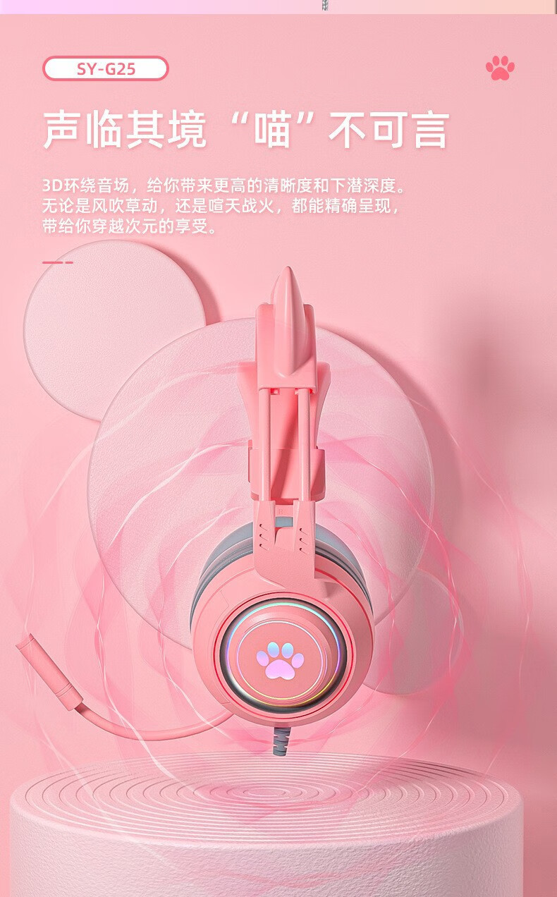 商品名称:斯泰克 猫耳游戏发光头戴耳机 SY-G25
