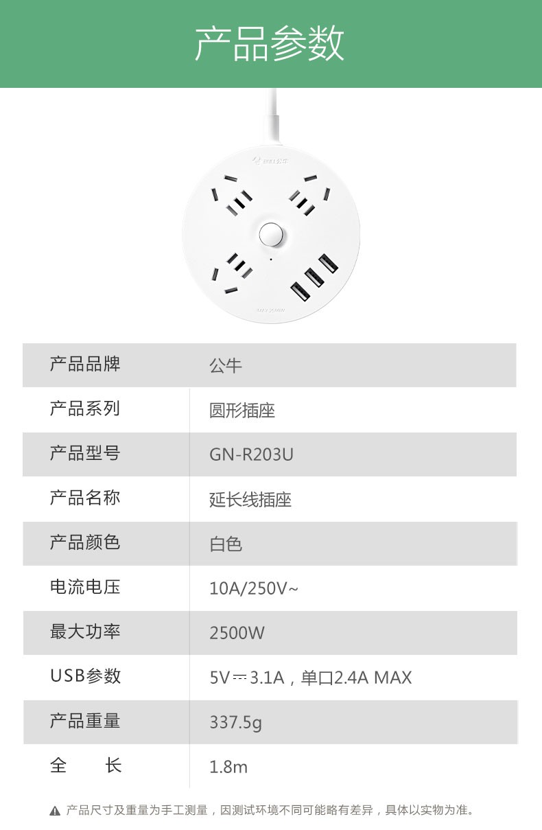 商品名称:公牛(BULL)圆形USB插座GN-R203U